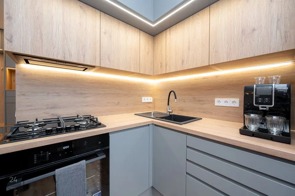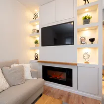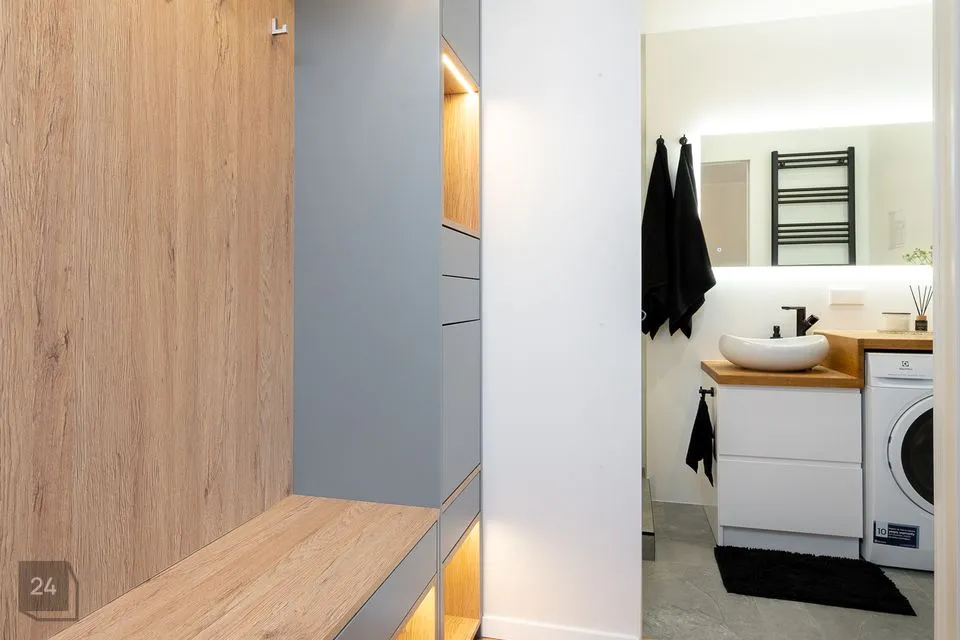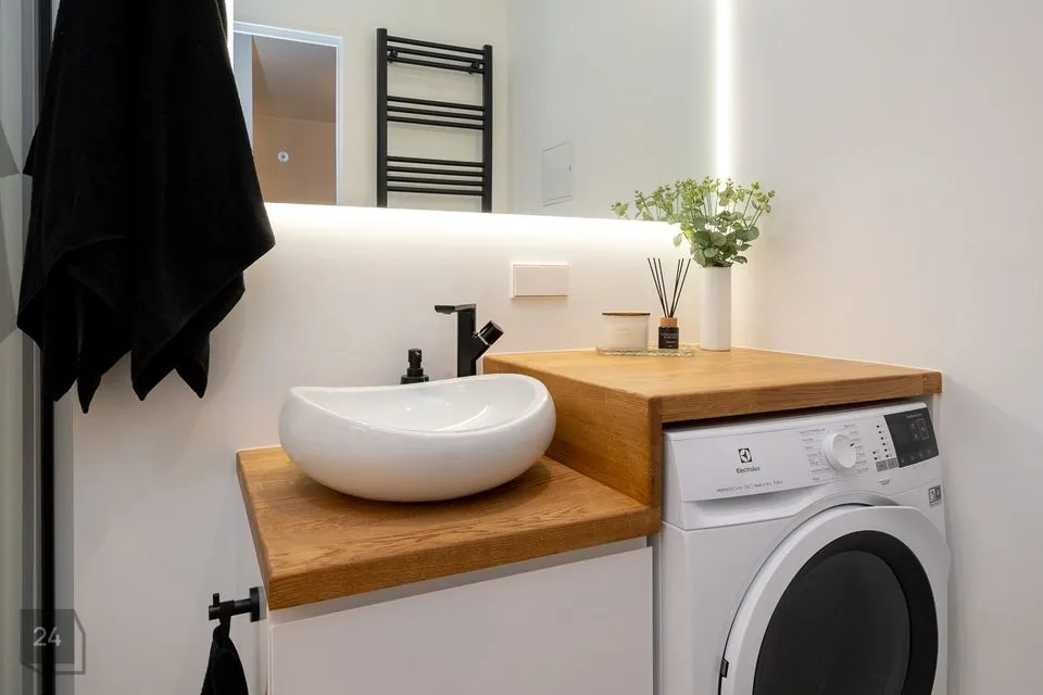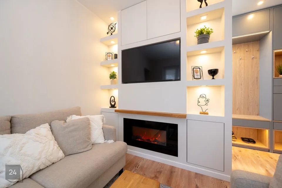 • Kasutatud on tammepuitu (söögilaud, diivanilaud, kaminasimss, vannitoas valamulaud ning efektriiul LED valgustusega)