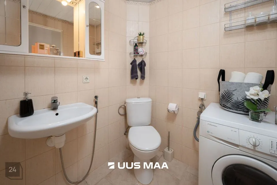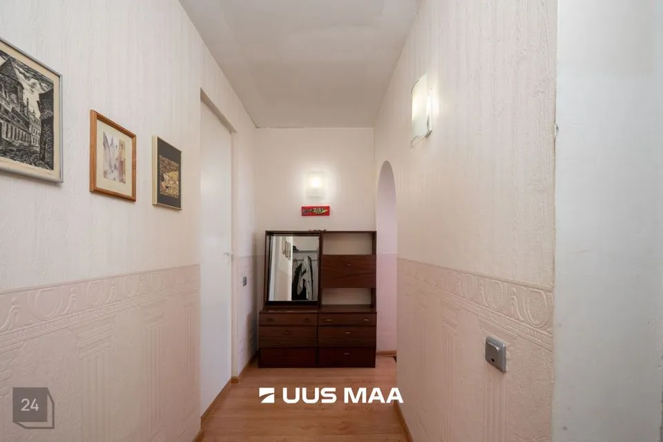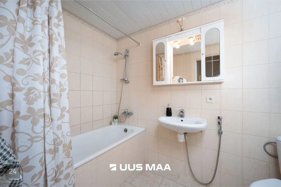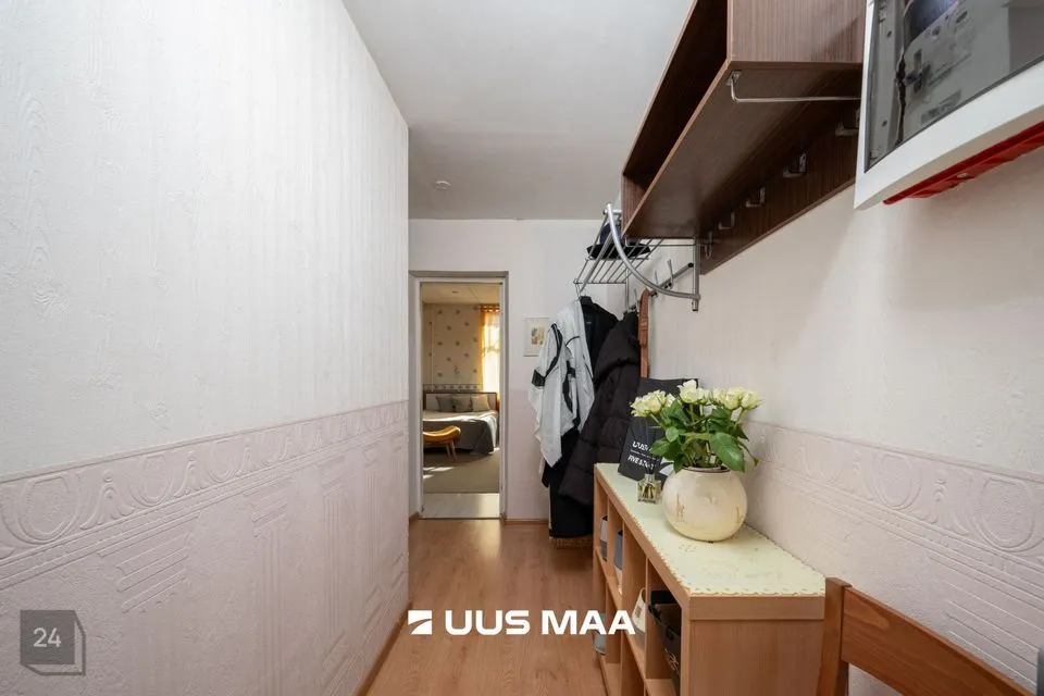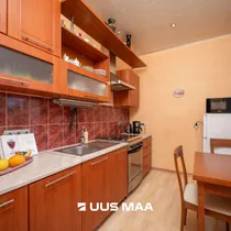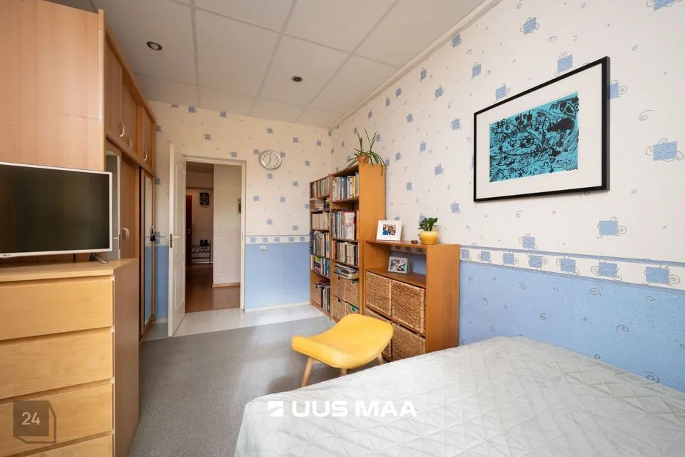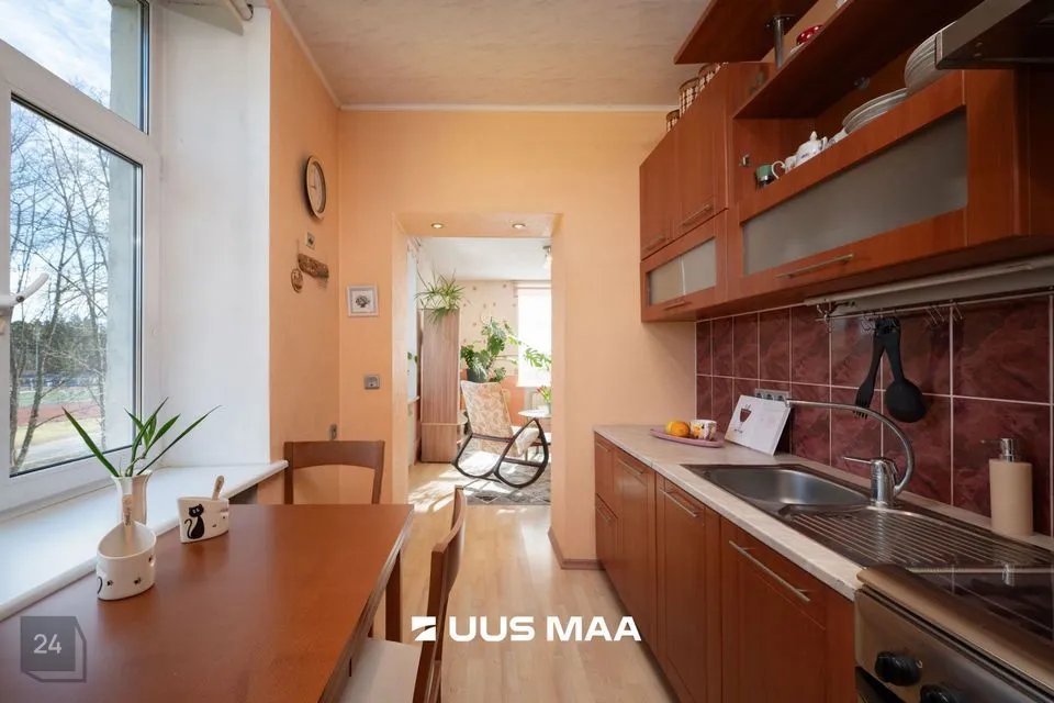Korteri planeering on praktiline ja mugav: eraldi asetsevad magamistoad, avatud köögiga elutuba ja vannituba tagavad nii privaatsuse kui ka funktsionaalsuse.