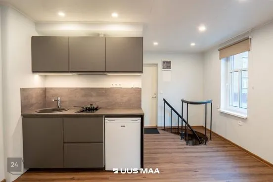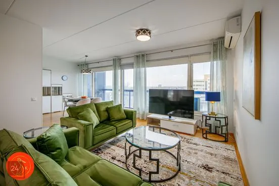 The apartment has a good layout, is light-filled and spacious. The apartment includes a living room, kitchen, bedroom, and bathroom.