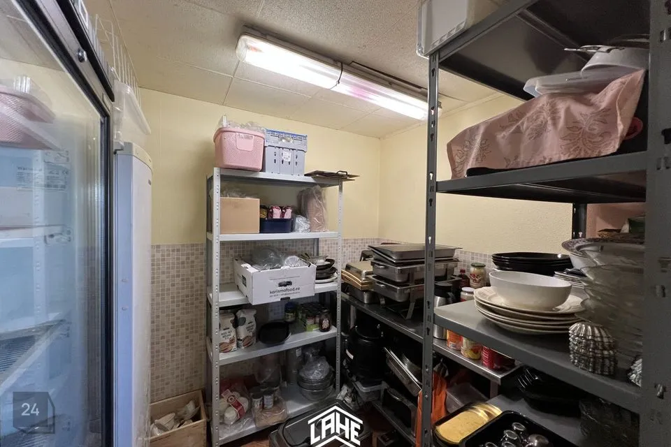 Kohvikusse jääb kogu vajalik sisustus sealhulgas 4 tavalist ning 5 sügavkülmikut, pliidid, ahjud, kartulikoorimismasin, nõudepesumasin jne. Samuti on olemas nii söögi valmistamiseks kui ka laudade katmiseks vajaminevad kööginõud.