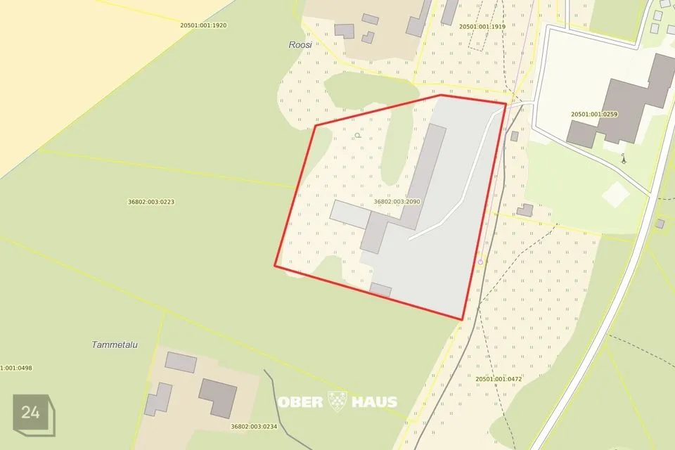 Ärimaa 95 %, tootmismaa 5%. Kinnistul paiknevad tootmishooned (936m²+61m²), Elekter - 3 faasi, 40 A, puurkaev.
