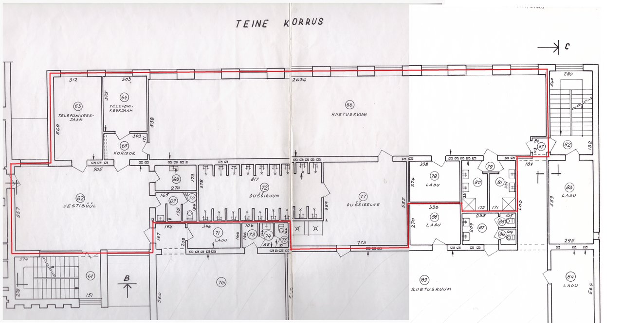 Müüdava ruumid asuvad 2-l korrusel, akendega lääne suunas ja müüdavate ruumide üldpindala on 322m².