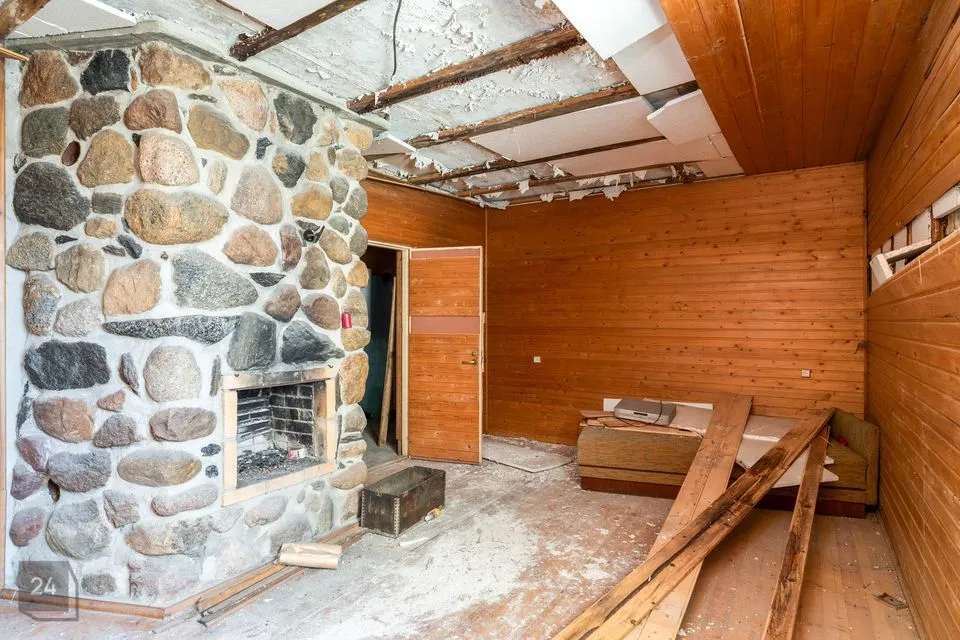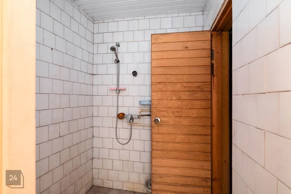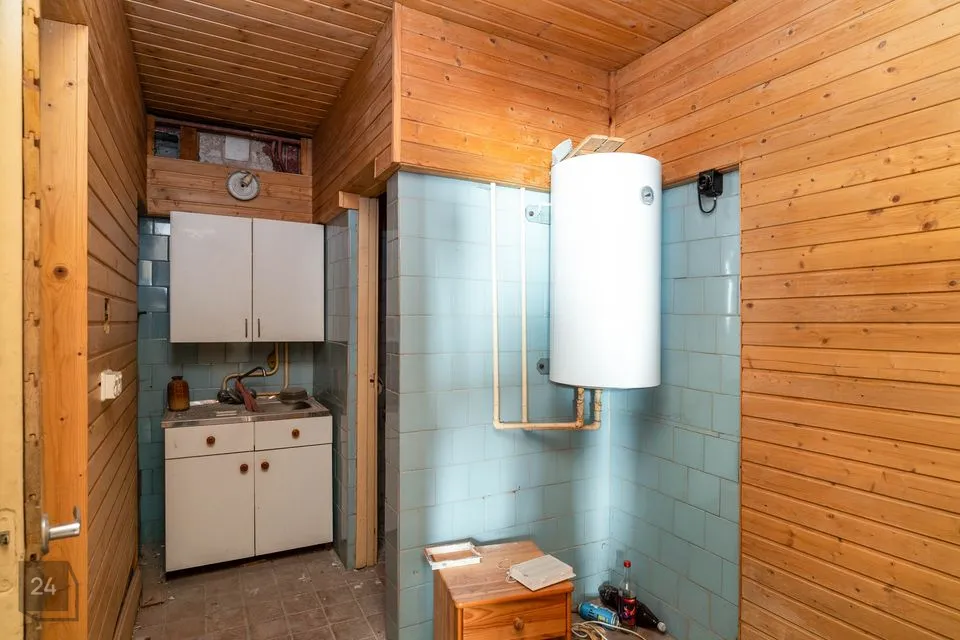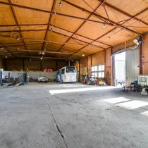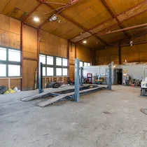 Kinnistu tagumises osas asub avatud varjualune ja garaažid, mille pind on 420m2. Tegemist on segaehitisega.