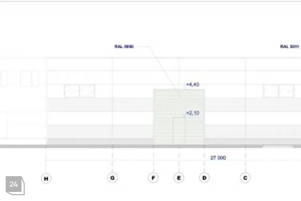 The production building's exterior walls are constructed from sandwich panels. Office rooms have air-to-air heat pumps (air conditioning). The building has adjustable gas heating.