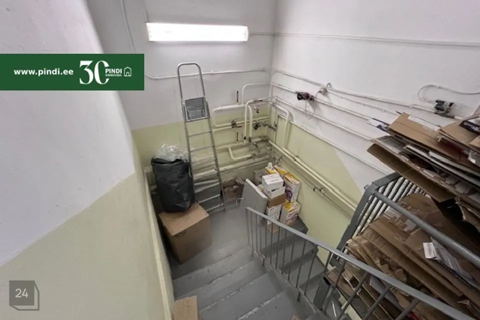 Objekt koosneb kahest korteriomandist (mitteeluruumist), millest üks asub 1.korrusel (277 m2, müügisaalid, kabinetid, abiruumid) ja teine keldrikorrusel (64,3 m2, ladu). Ruumid on renoveeritud, vahetatud tehnosüsteemid, paigaldatud gaasiküttekatel. Müügisaalis on avarad vitriinaknad, mis on kaetud turvakardinatega. Paigaldatud on valve, sh videovalve.