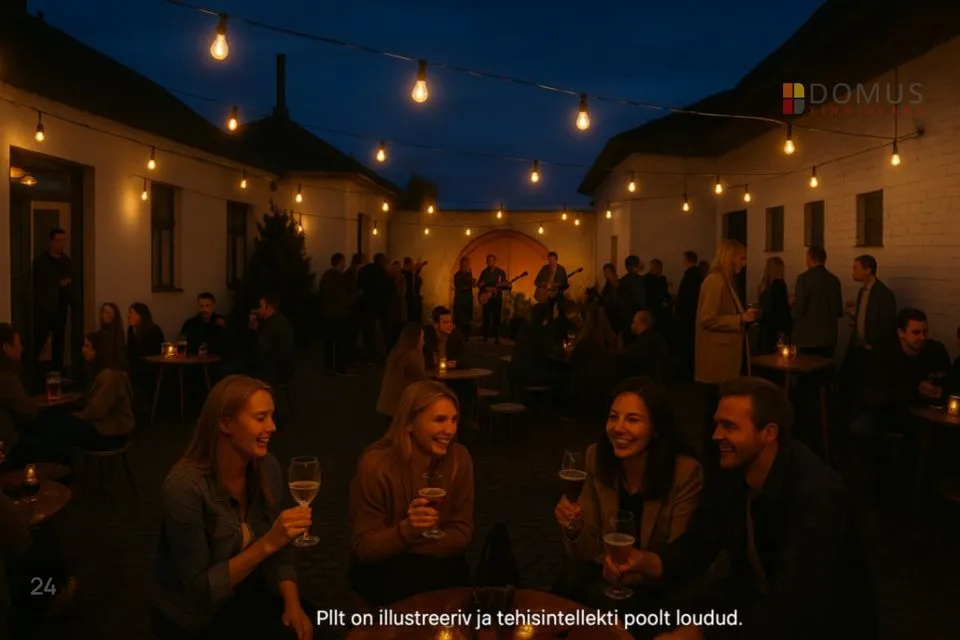 Secret inner courtyard with a stage and summer vibe – perfect for bands, pop-up bars, outdoor events, or a creative hub!