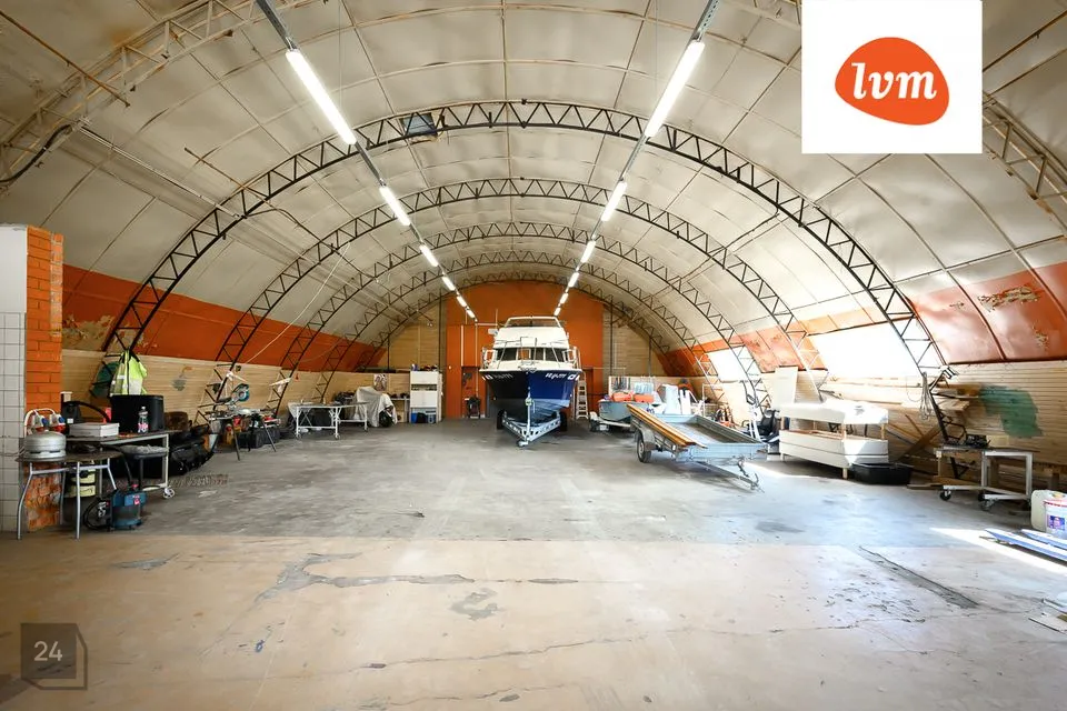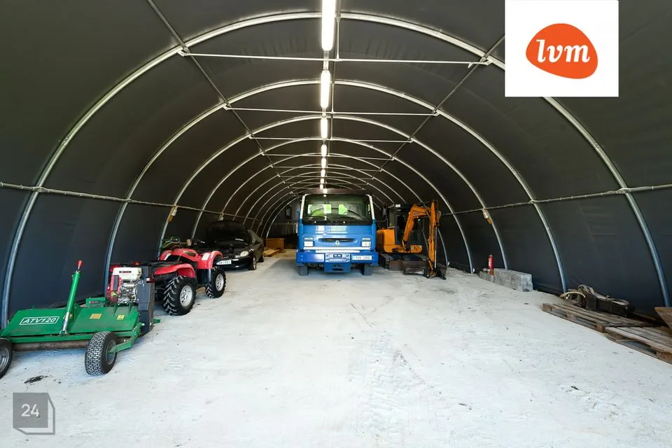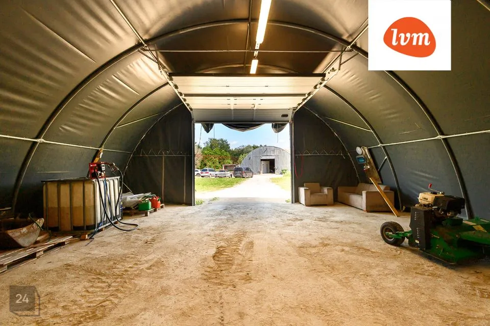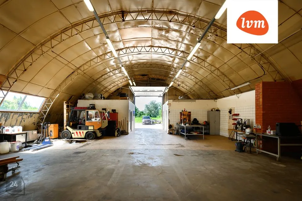Suurel kinnistul kaks angaari. Suuremas, plekkprofiilist angaaris on olnud varem akende-uste tootmine.