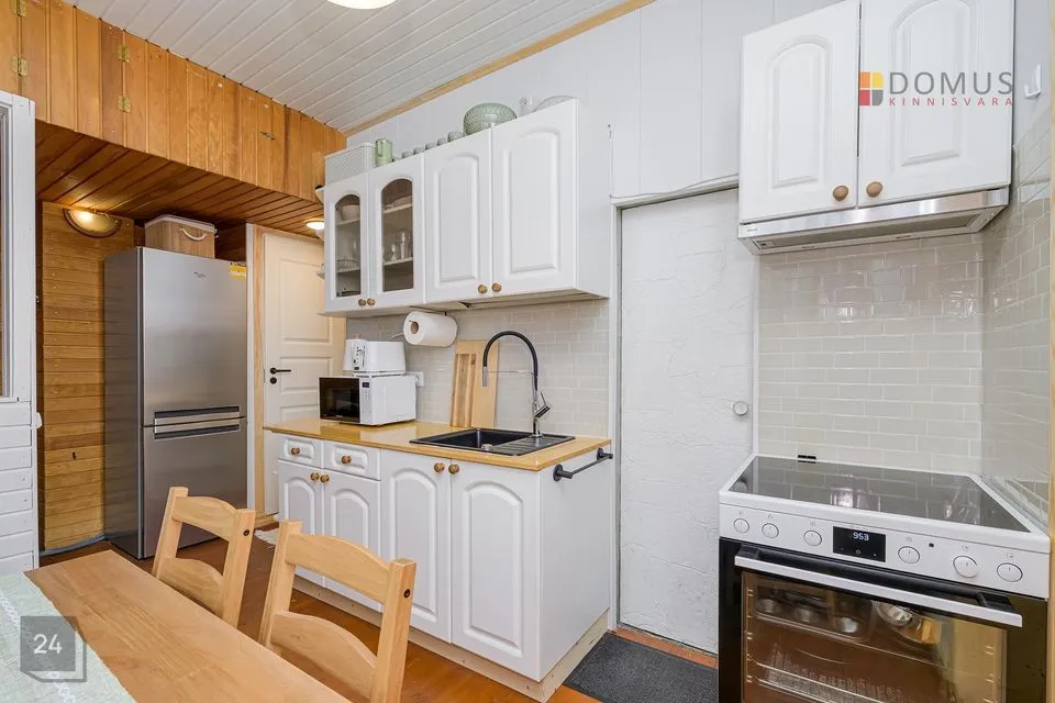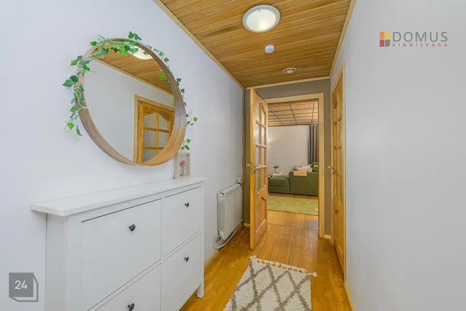 Korteris on avar elutuba, magamistuba, köök, saun, duširuum, wc ja katlaruum. Ruumides on lokaalne keskküte, mida köetakse tahkeküttekatlaga. Elutoas on kamin. Soe vesi boilerist.