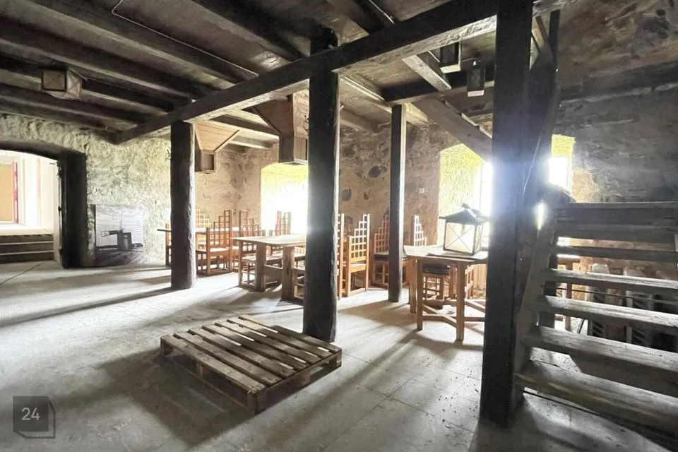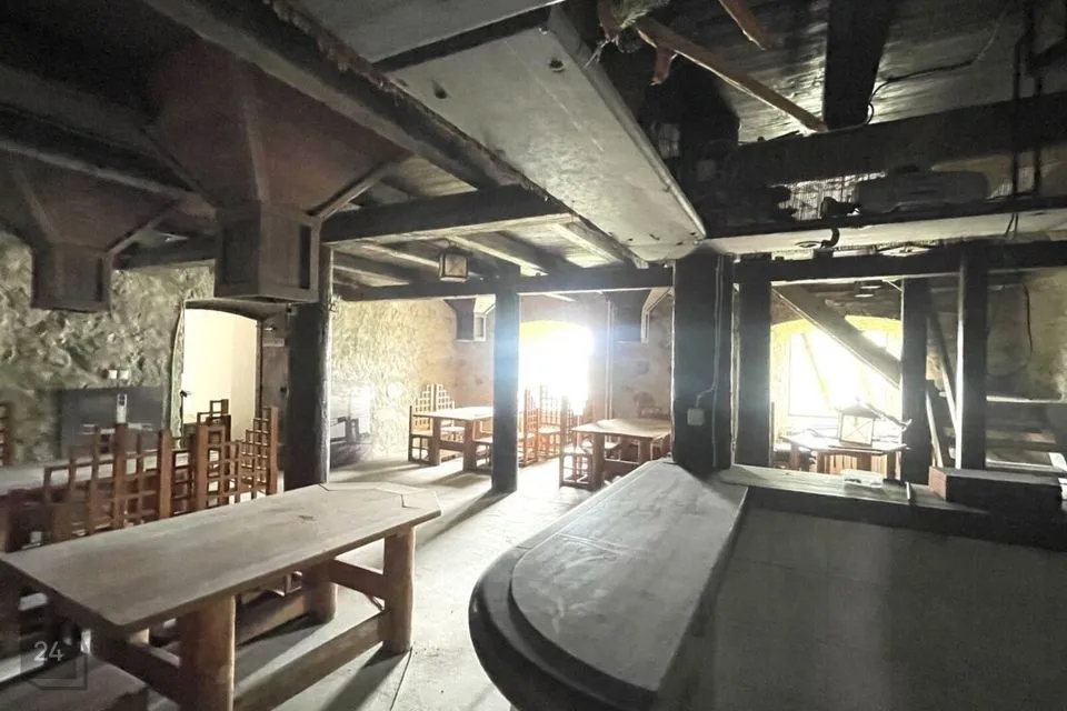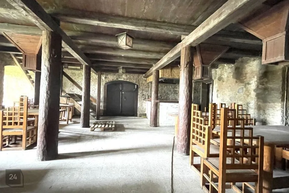 Hoone 1. korrusel paiknevad keskosas (tuulikuosa) saal, hoonetiibades varasemad köögi ja puhkeruumid ning WC-d. Toitlustusruumid olid varustatud liftiga.