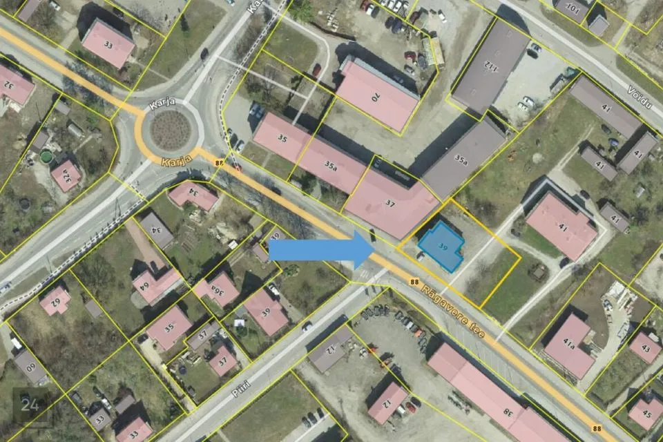Ühekorruseline ärihoone asub Rägavere-Karja ristmikus. Hoonel on kolm eraldi sissepääsu.