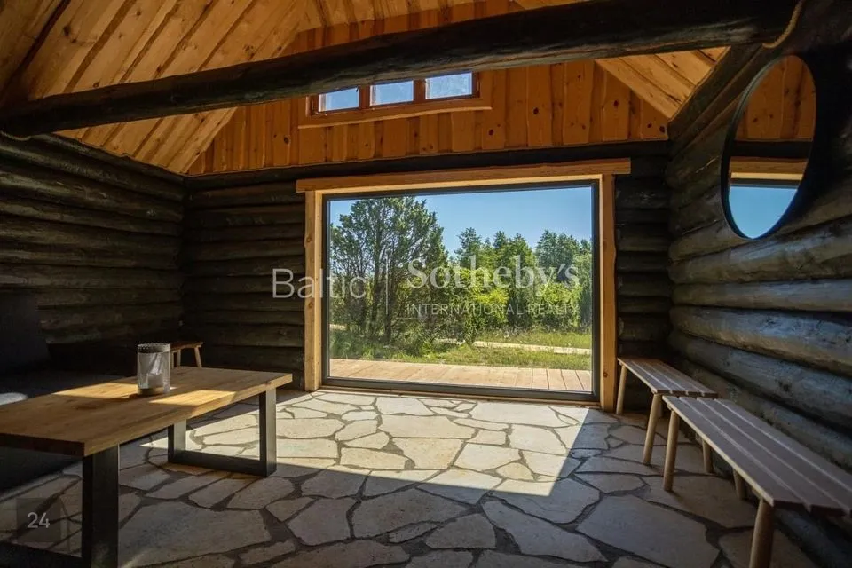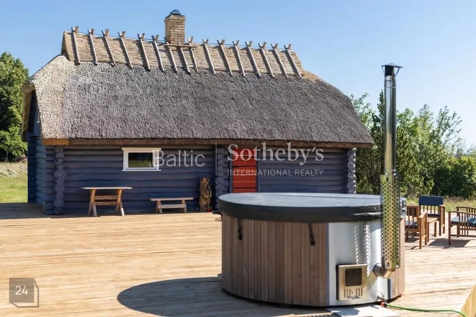 Saunamaja suurusega on avar ja ehitatud ehtsatest palkidest, põrandal dolomiitkivi. Terrassile on paigaldatud tünnisaun, milles on mõnus nautida Abruka rahu, vaikust, linnulaulu ning meremüha.