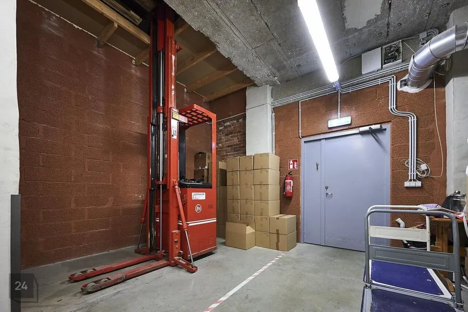 Esimesel korrusel asub ladu (ca 400 m2) koos laokontori, garderoobi, köögi, duširuumi ja WC-ga ning tehnoruumid (gaas, elektrikilp).