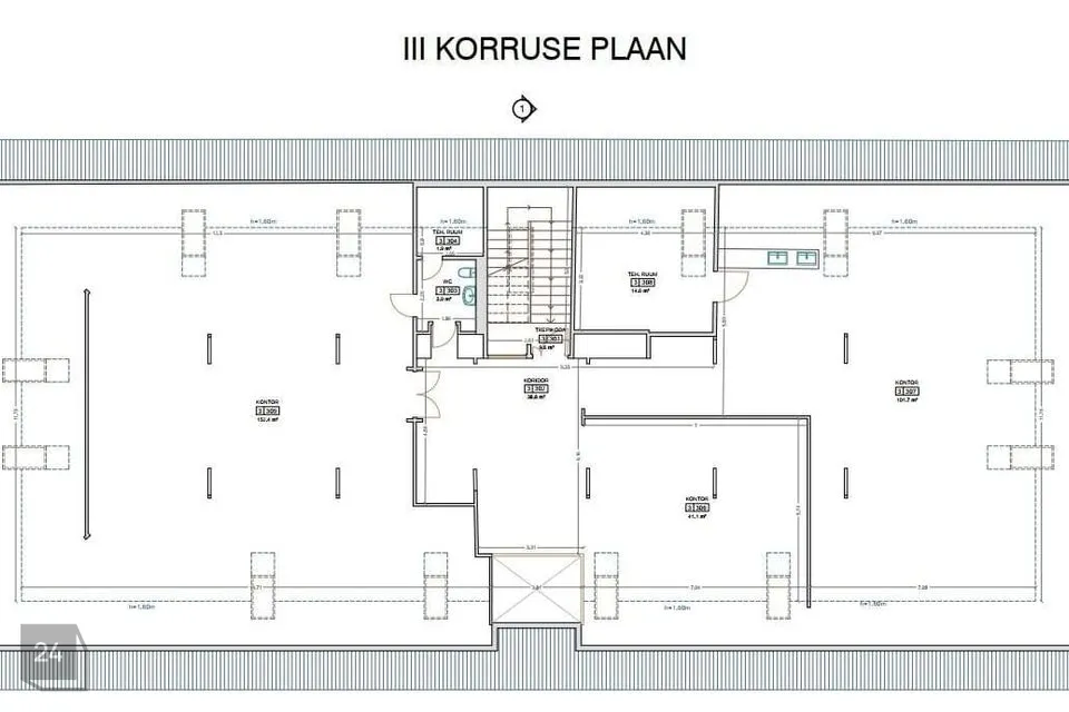 Kolmandal korrusel asub avatud kontor ca 330 m2 koos WC ja ventilatsiooniruumiga.