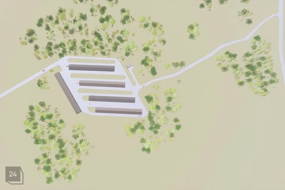 Hoone 3 (116019906) : 1124 m2. Vundament, elekter, vesi, kanal. Võimalik osta 125 000 EUR. Võimalik koheselt paigaldada laohall/angaar/telk.