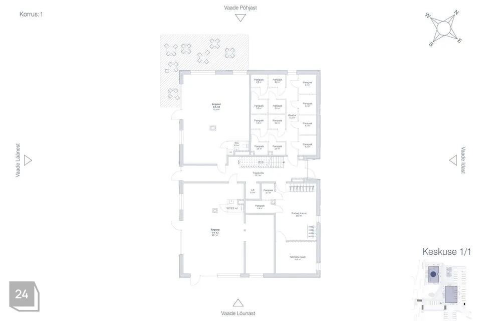 - Suurepärane juurdepääs ja nähtavus tänavalt — sobib hästi bürooks, klienditeeninduseks, salongiks või väikeäriks.