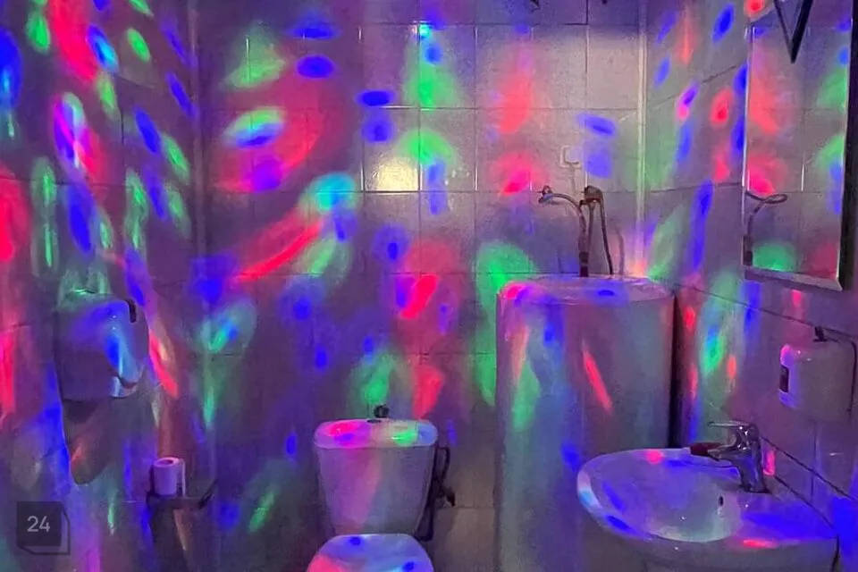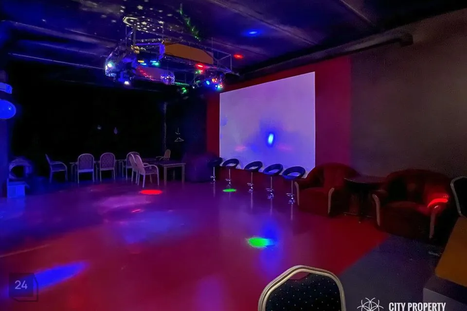 Suures saalis on hetkel projektor ja suur viiemeetrine ekraan. Äripinnal on kaks tualetti ja dušš.