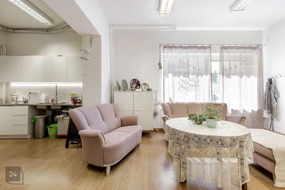 Kõrged laed (3 meetrit), heledad värvitud seinad, kõrge tugevusega laminaatparkett, kõik on kaasaegses värvilahenduses.