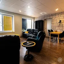 Teine osa: Ca 100m² pind, mis on jaotatud kolmeks eraldi büroopinnaks, lisaks eraldi WC ja duširuum.