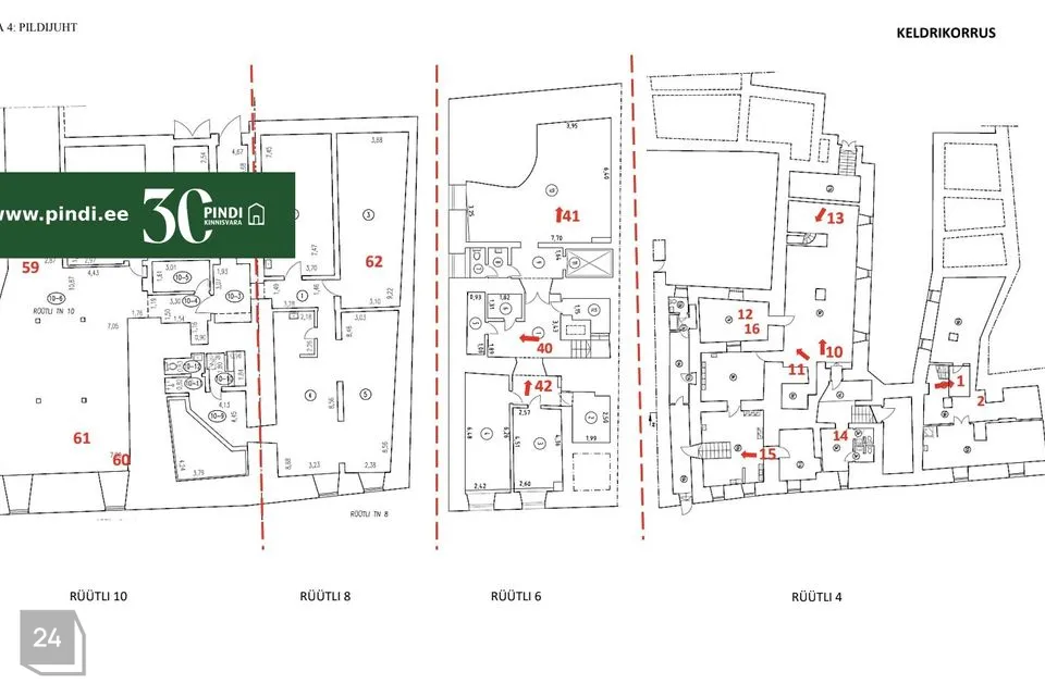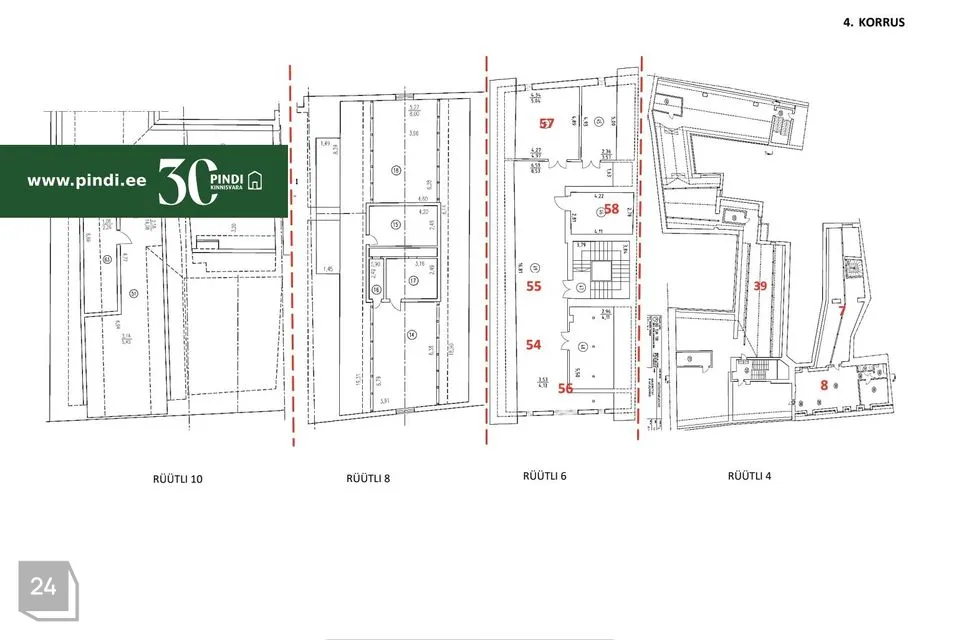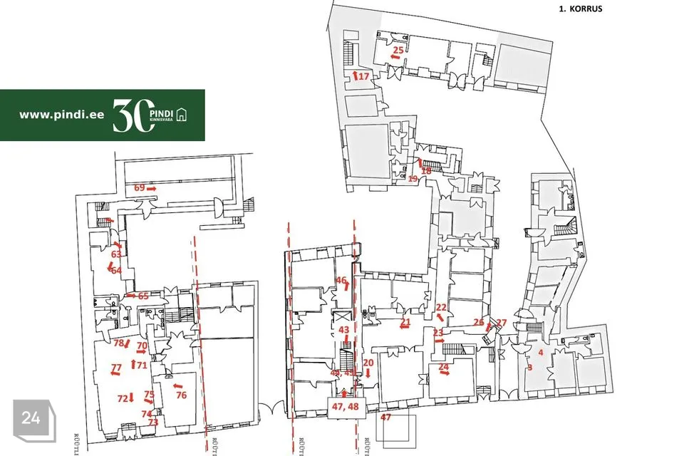 • Rüütli 4 mõtteline osa kinnistust – 1498 m², suletud netopind: 2409,8 m².