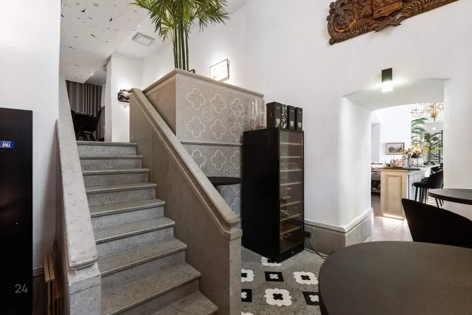 See äripind on saanud 2015 aastal sisearhitektuuri preemia, olles kooslus gooti arhitektuuri motiividest kaasaegses lahenduses. Kvaliteetsed ja eritellimusel valmistatud sisustuselemendid loovad ajasturomantilise atmosfääri, kus iga detail on täiuslik. Rasked, kõrged paekivi portaalid ja põrandad, metallkonstruktsiooni ja klaasdetailidega siserõdu ning ajastutekstuursed seinad etendavad täisulikult kunagist maailma tänases stiilis. Täispuidust maast laeni kapid ja riiulid lisavad ruumidele jõulisust ja majesteetlikkust. See interjöör on kunstikogemuslik rännak, mis loob unustamatuid muljeid.