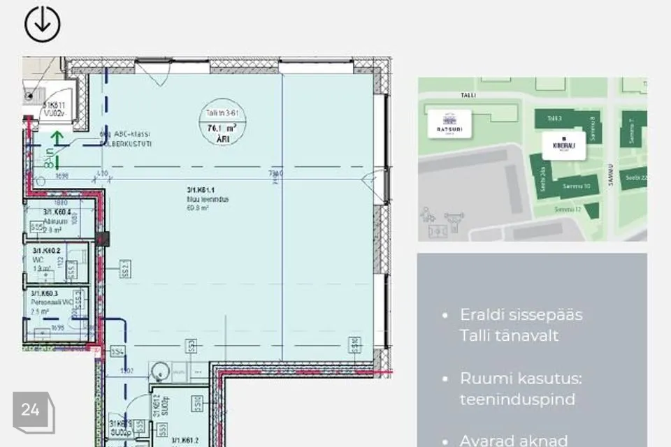 Müüa 2025.a lõpus valmivas hoones 78,5m2 suurune äripind. Äripinna otstarve - teenindus.
