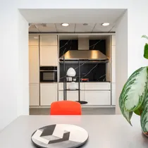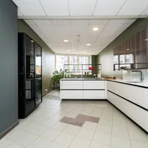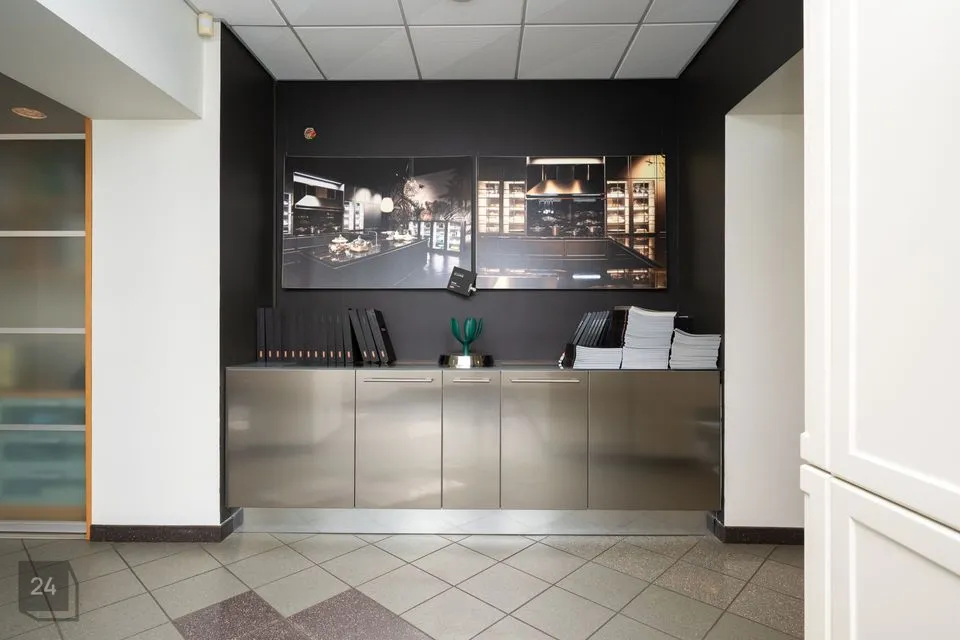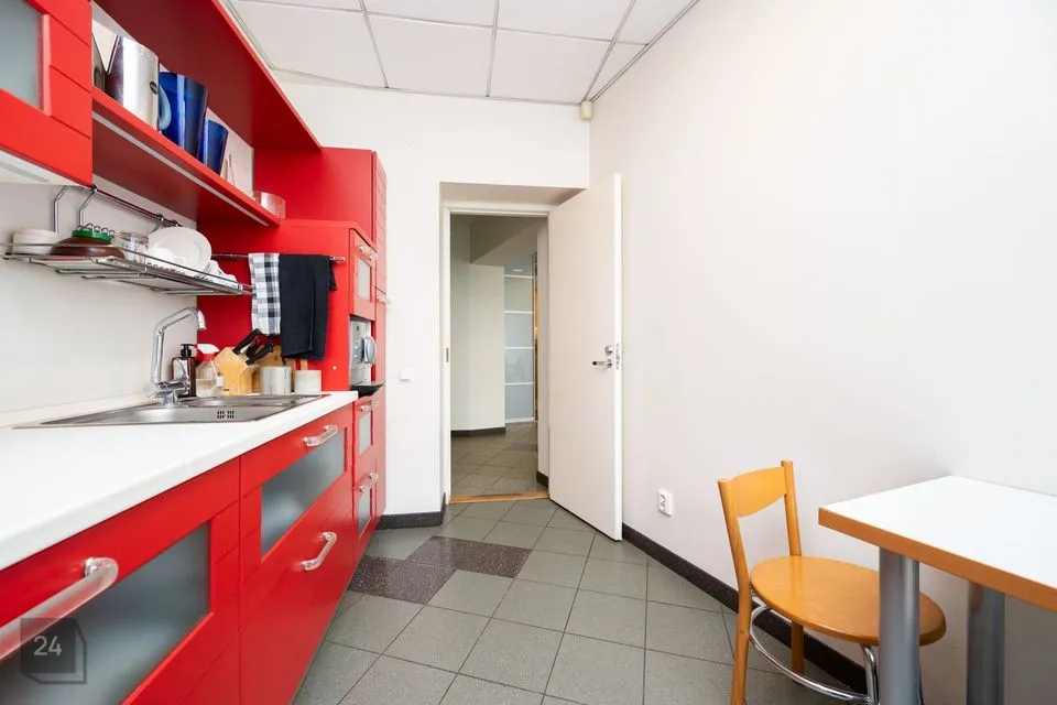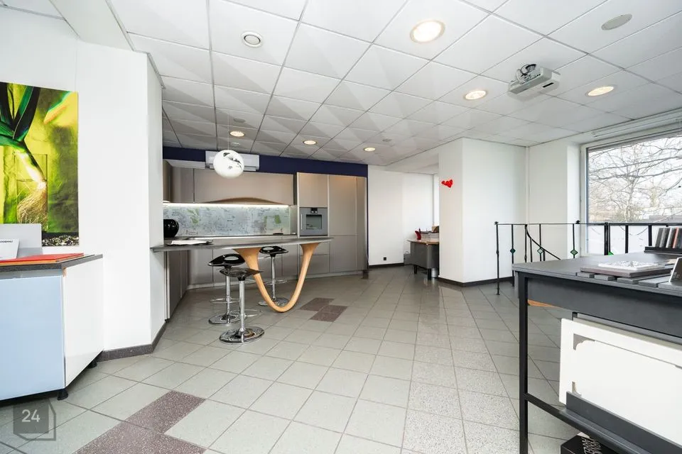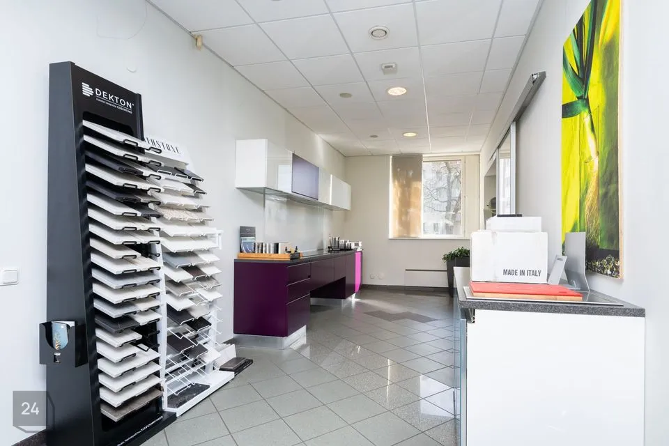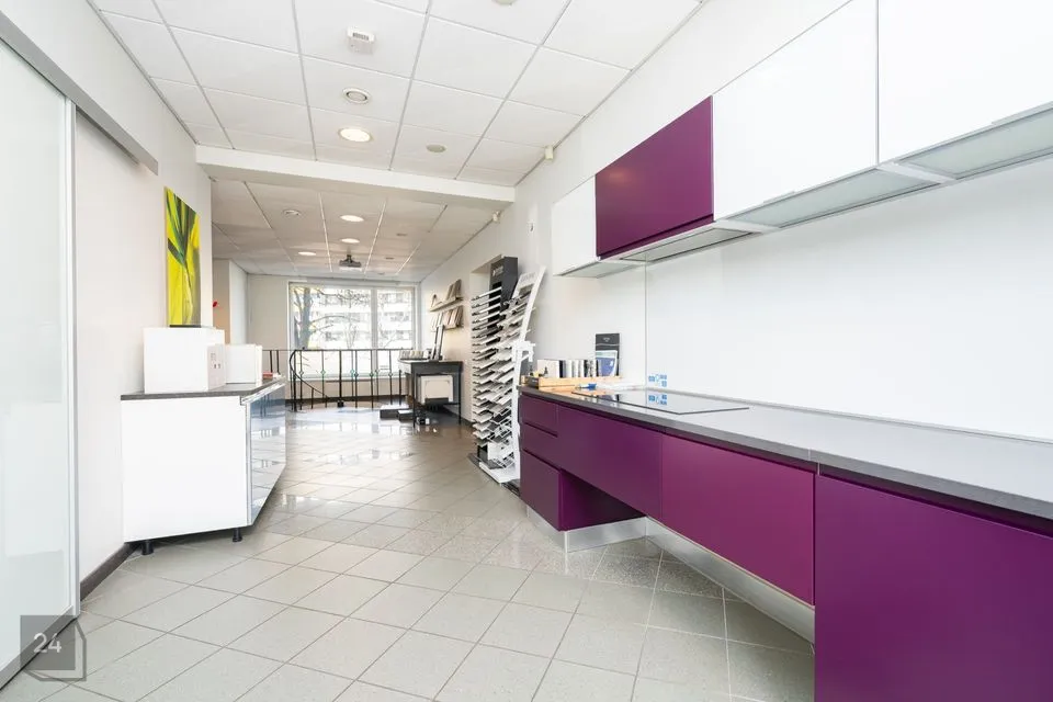Ruumidel on kaks eraldi sissepääsu – üks null korruselt ja teine esimeselt korruselt. Siseruumid on viisakad, hooldatud ning plaaditud põrandatega. Suured vitriinaknad avanevad tänavale, tuues ruumidesse palju loomulikku valgust ja pakkudes suurepärast eksponeerimisvõimalust.