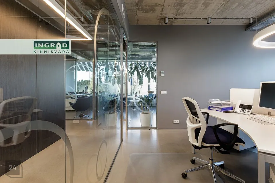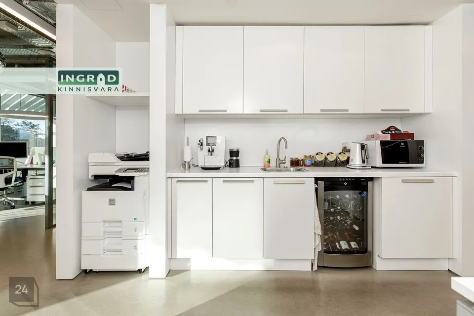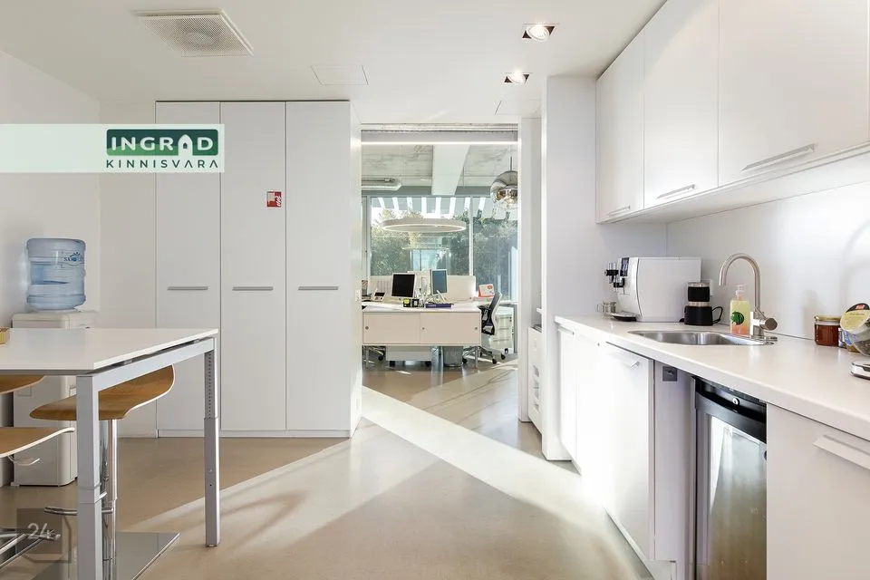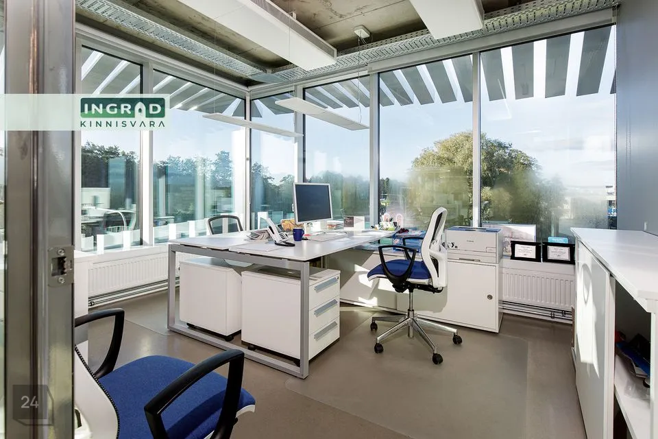 Кроме того, в здании установлено напольное отопление, которое создает равномерное и комфортное тепло, а также система вентиляции с рекуперацией тепла, которая обеспечивает свежий воздух и экономит энергию. Системы охлаждения и вентиляции интегрированы так, чтобы круглый год в здании поддерживался оптимальный и комфортный микроклимат. Серверная комната с правом пользования уже включена в стоимость и находится на том же этаже, что и сам офис.