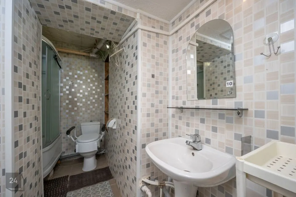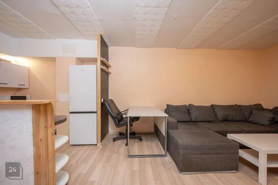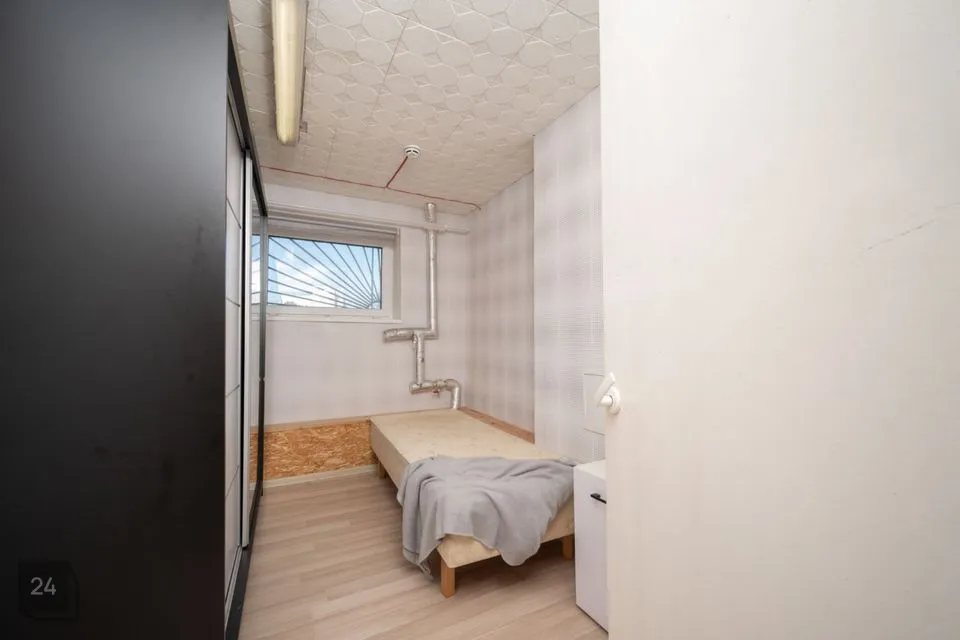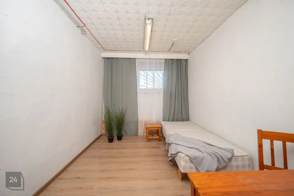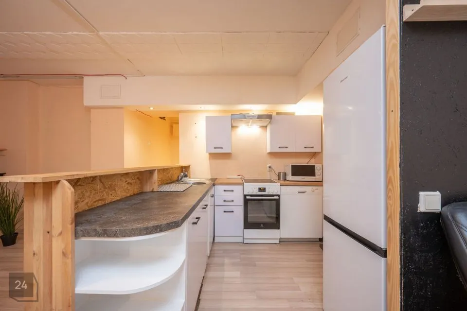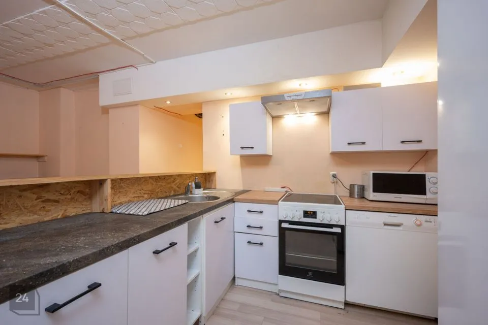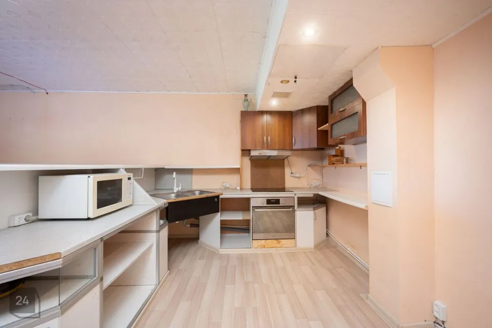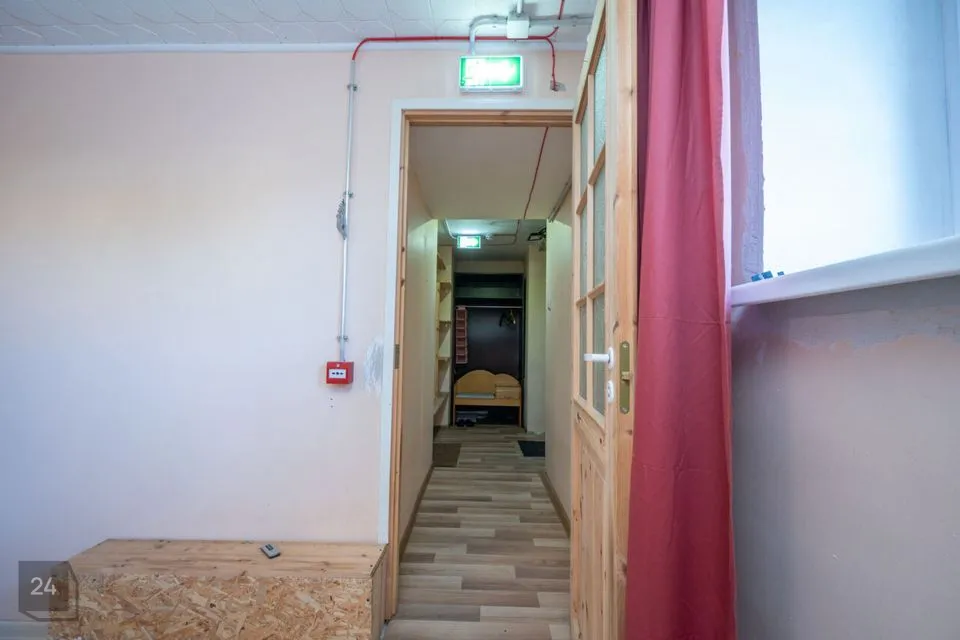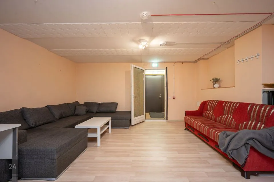 Tegu on mitteeluruumiga, ja on registreeritud kauplusena ehitusregistris. Pinda on kasutatud kahe sissepääsuga majutuseks ehk elamiseks, ja sel põhjusel on ruumid praegu kahelt poolt sissepääsuga, kahe köögi, - dušširuumi ja kahe WC-ga, eluruumidele sobiva sisustusega. Küll on sellel müüdaval mitteeluruumil väikse mõõdulised aknad. Mitteeluruumi pind asub korterelamu maapealsel sokli korrusel. See pind sobib väga hästi loomakliinikuks või groomingu salongiks või ka ilusalongiks, kuna paikneb elamupiirkonnas ja on täiesti eraldi sissepääsudega. Sissepääsud paiknevad mitteeluruumi paiknevad maja külgedel, mil ei sega mingil moel korterelamu elanike, ehk täiesti eraldi korterelamu sissepääsust.