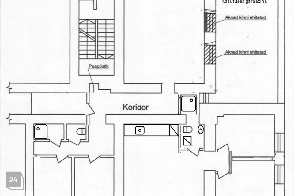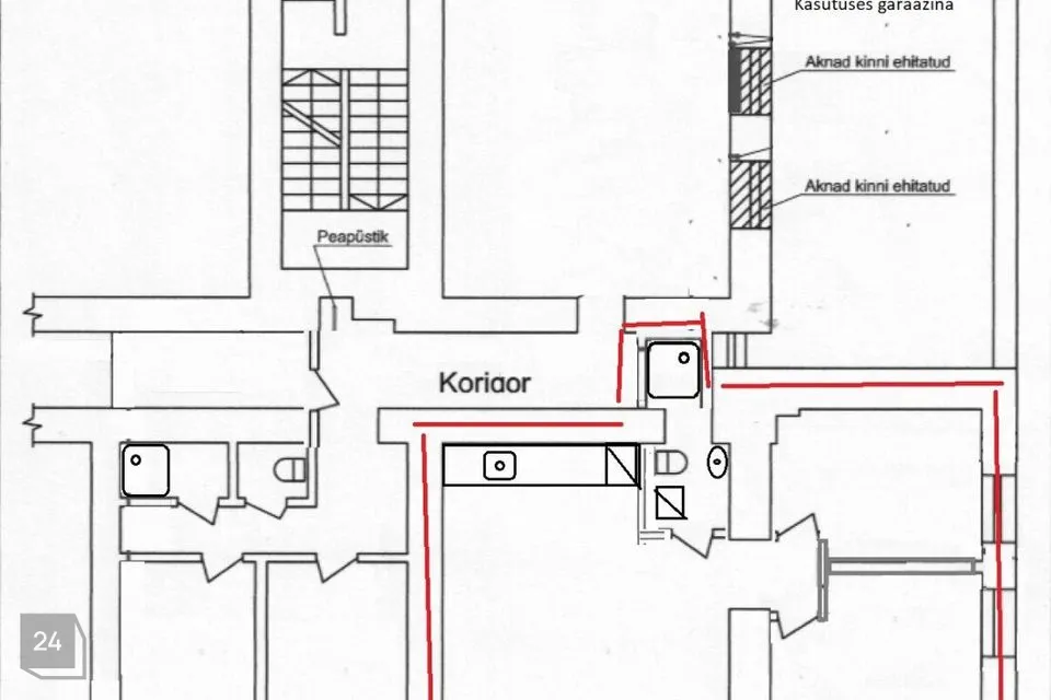 See mitteeluruum on küll kahe sissepääsuga, küll on kommunikatsioonid ühised – ehk keskkütte torustik, vee ja elektrimõõtmine. Ja tõenäoline, et viimistlus vaja enda ettevõtluse tarbeks kohendamist.