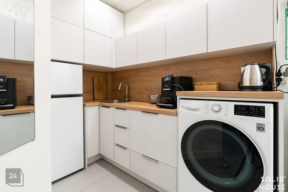 • Privaatses nurgas asuv töötajate puhkeruum koos täisvarustuses köögiga