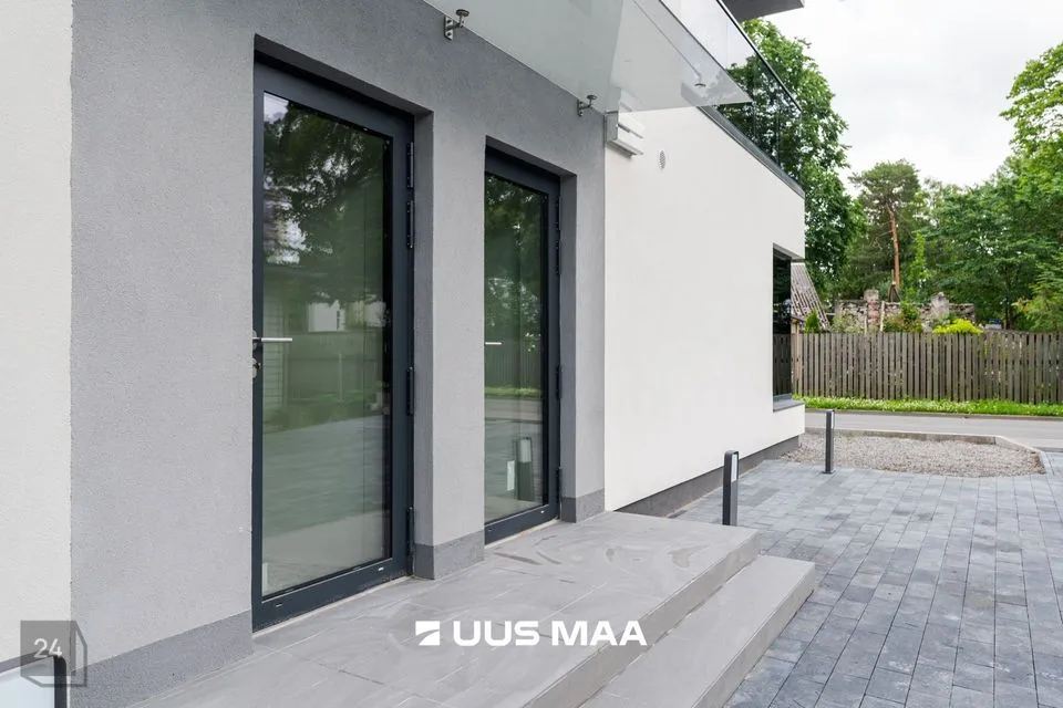 Privaatne sissepääs mööda sisetreppi otse õuealalt. Planeeringus on mitu eraldi ruumi, kaks tualettruumi ning ligipääs rõdule. Sobib kontoriks või esindusruumiks.