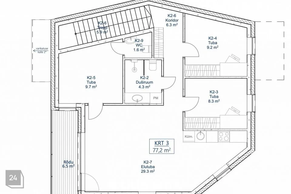 • Teine korrus – 77,2 m² äripind + 6,5 m² rõdu