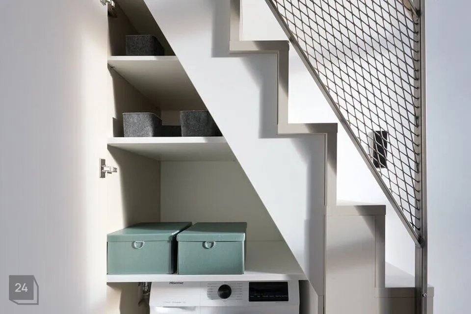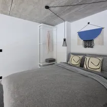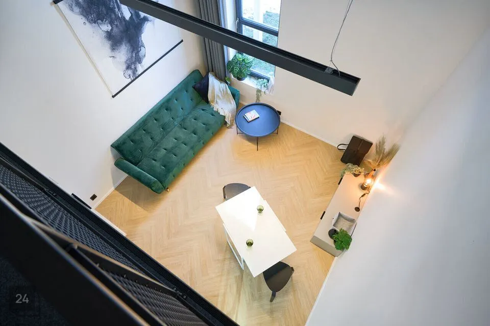 Igas loftis on esimesel tasandil köök-elutuba, esik ja duširuum, teisel tasandil on magamisruum. Laekõrgus 4,7 m, akende kõrgus 3,7 m.