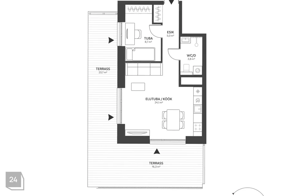 Korterid antakse üle viimistletuna. Valikus on kaasaegsed ja ajatud sisekujunduspaketid, mis sobivad erinevate maitsete ja elustiilidega.