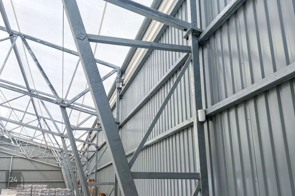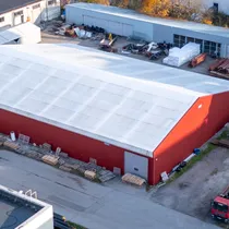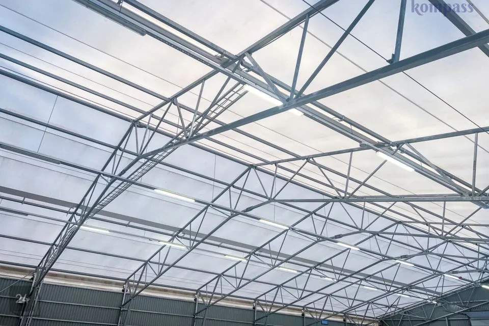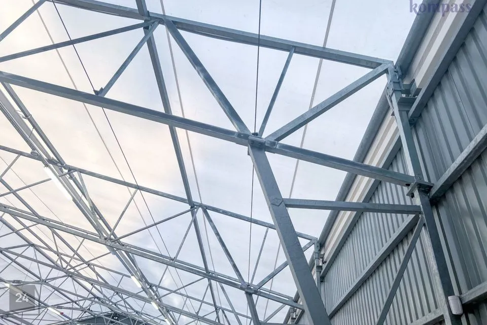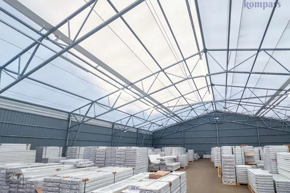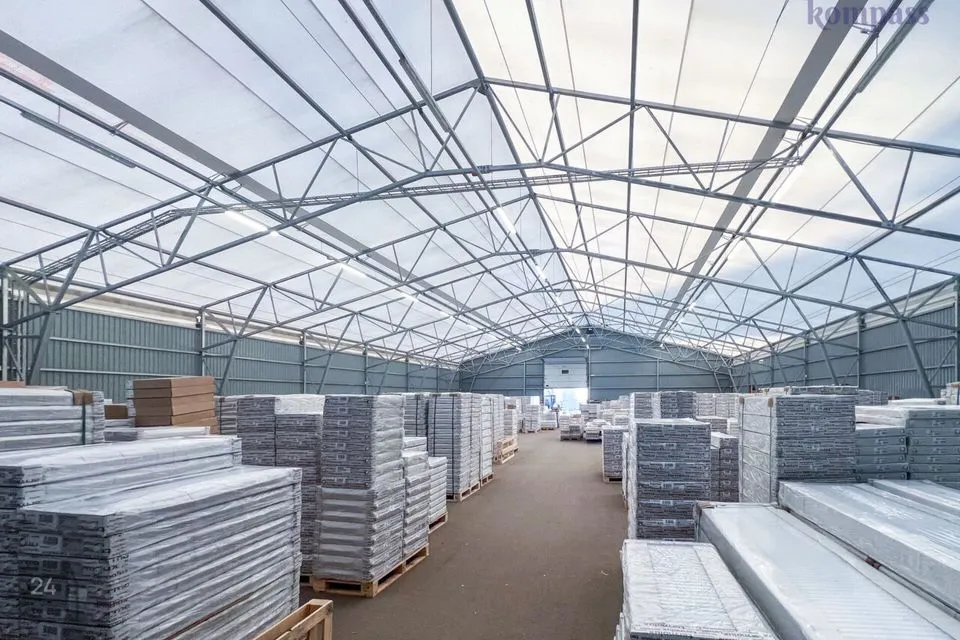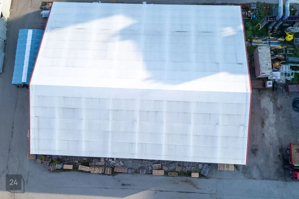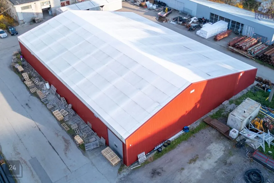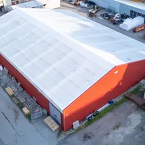 Teisaldamiseks 1200 m² kuumtsingitud teraskonstruktsiooniga kerghall