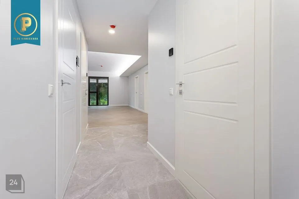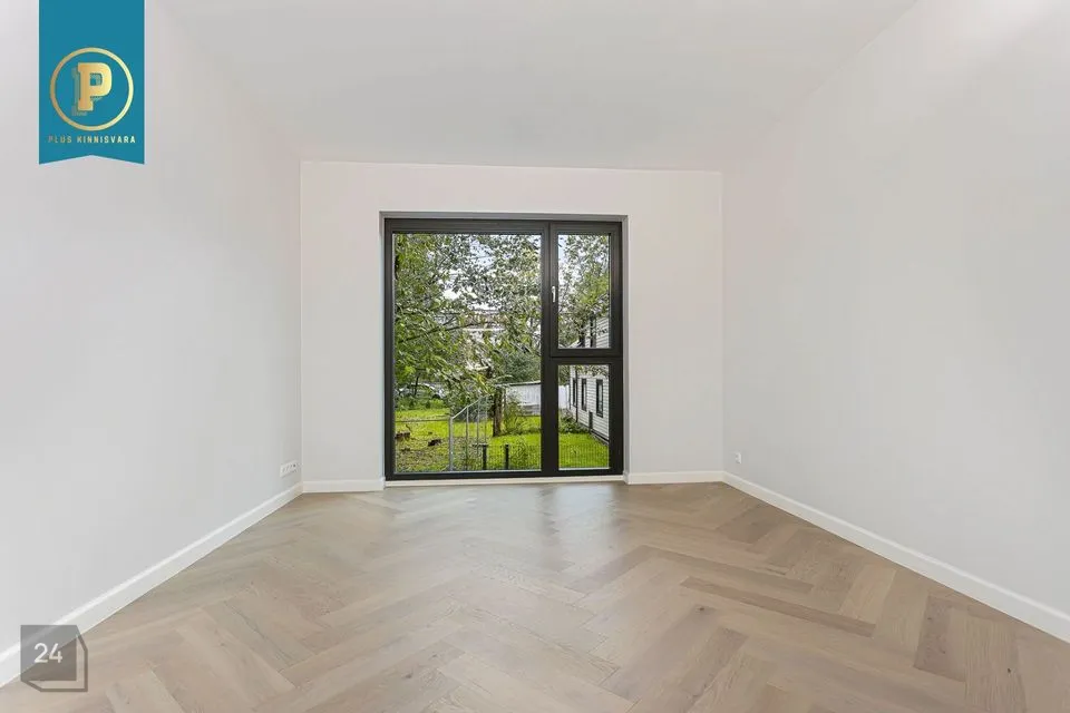 Siseviimistlus on lahendatud heledates toonides ning kontrasti lisavad tumedad aknaraamid. Kasutatud on väga kvaliteetseid materjale ja santehinikat. Põrandaid katab hele tammepuidust kalasabaparkett ning seinad on värvitud. Esiku ja kööginurga põrand ning vannitoa ja tualeti põrandad ja seinad on plaaditud. Valguslahendusena on kasutatud energiasäästlikke LED valgusteid ning hubasust lisavad timmerdatavad kariisivalgustid. l