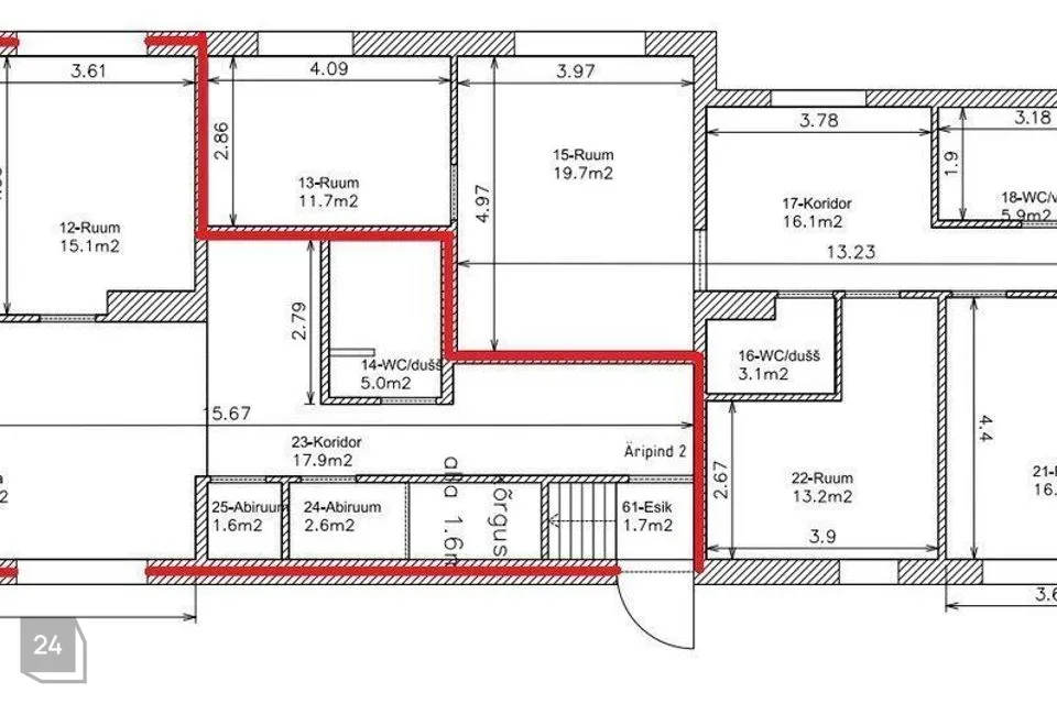 Esindusliku äripinaa koosseisu kuuluvad esik; suurem ruum, kuhu on planeeritud ka kööginurk; kaks väiksemat ruumi, vannituba-tualett ning lisaks eraldi tualett. Lisaväärtusena olemas ka terrass. Plaan piltide seas olemas.