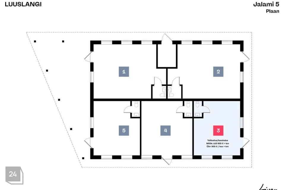 Hoone koosneb viiest eraldiseisvast äripinnast, mille suurused on 30–50 m².