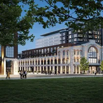 The grand four-story building, characterized by its historical limestone architecture, will house up to 4,000 m² of service, office, catering, and retail spaces