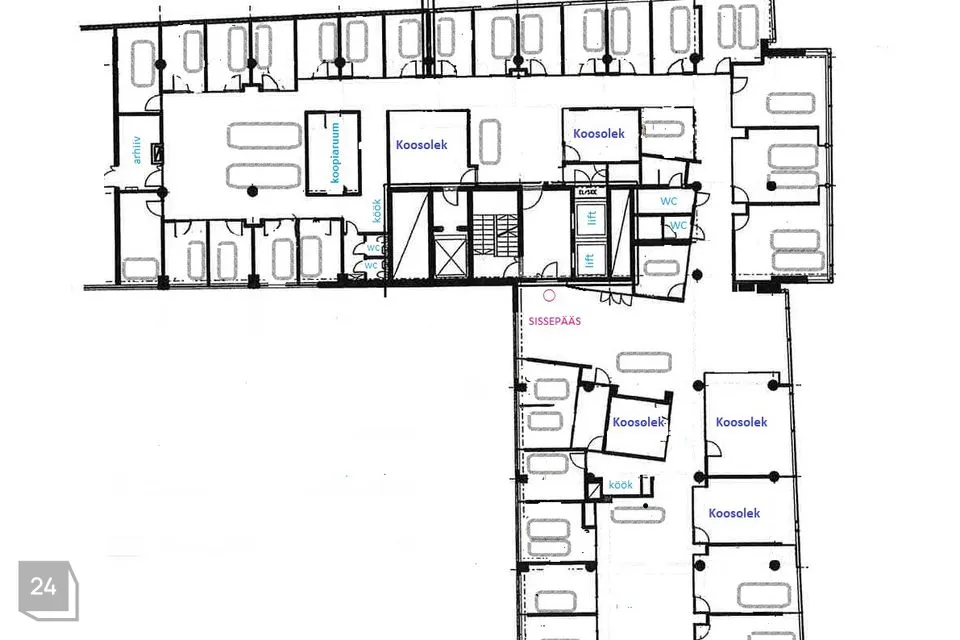 Pinnale on kaks sissepääsu liftihallist, mis võimaldab soovi korral eraldada näiteks kliendiala ja back-office'i või pinna vaheseina abil kahe ettevõtte vahel jagada kaheks eraldi sissepääsuga kontoriks (mõlemasse jääks ka köök, tualettruumid ja muud abiruumid) .
