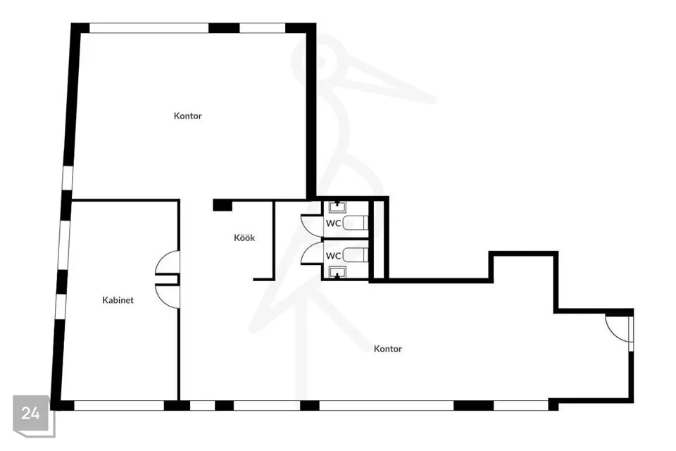137,3 m² suurune büroopind asub hoone 2. korrusel ning ulatub läbi maja, pakkudes nii valgusküllasust kui ka privaatseid tööruume. Sissepääsu juures on esinduslik vastuvõtuala, olemas on kööginurk, kaks tualetti ning kolm eraldi kabinetti või koosolekuruumi. Planeering toetab nii klientidega töötamist kui ka meeskonnatööle orienteeritud lahendusi.