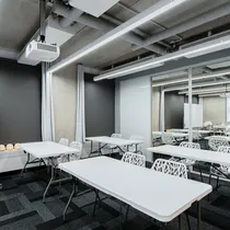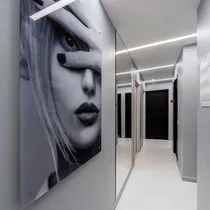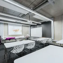 Ruumides on kasutatud heledaid, puhtaid ja kvaliteetseid viimistlusmaterjale, mis loovad modernse ja ajatu üldmulje. Kasutatud on kõrgetasemelist tehnikat ja sisustust, mis toetab professionaalset töökeskkonda.