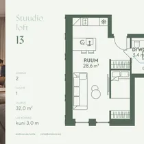 !! Broneerimisel kuni 11.01.2026 kehtib äripinna ostul pühadekampaania "1-2-toalistel stuudio loftidel kingituseks köögi- või sisustuskrediit 10 000 € “. Kingituse asemel võib valida ka vastavas vääringus soodustuse korteri hinnast. !!