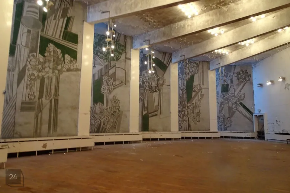 Saali kujundus on suursugune. Skrafiitod on pastelsed rohelised ja hallides toonides. Reljeefsed krohvipinnad, millel on kujundatud enamasti loodusest võetud motiive. Skrafiitode all on pinda 294 m2, mis on väga heas seisukorras.