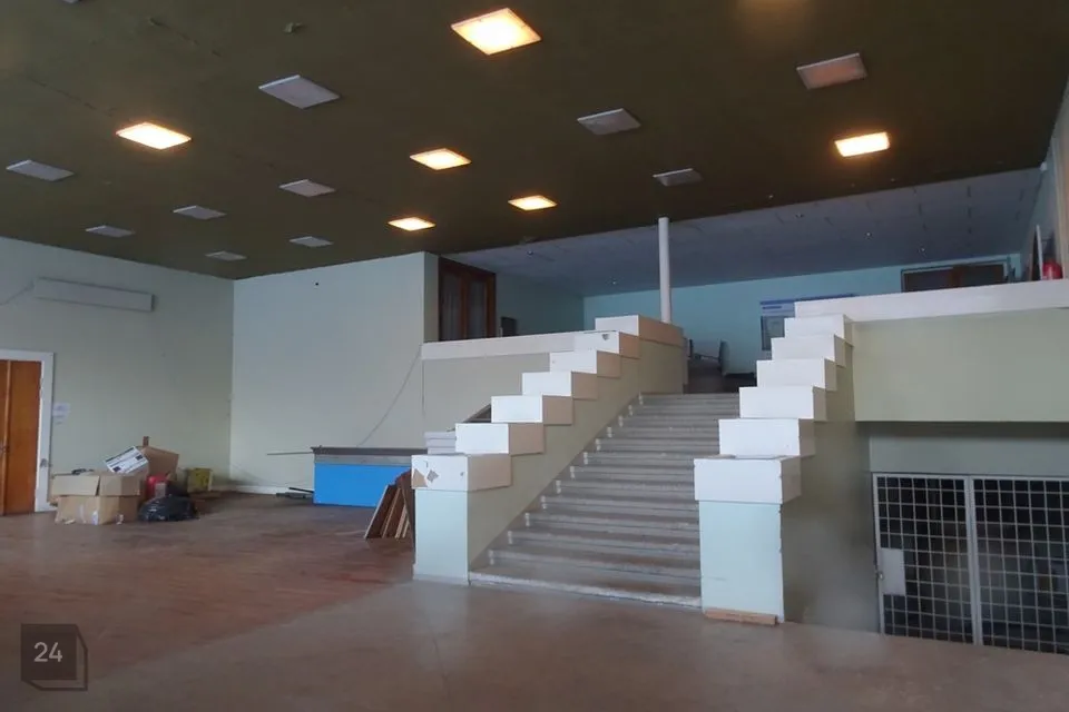 Üleval poolkorruse parempoolses osas on renoveeritud büroo osa, paigutatud on uued alumiiniumpakett aknad. Ruumides on ripplaed, elektrijuhtmestik on vahetatud, klaasitud tahveluksed,