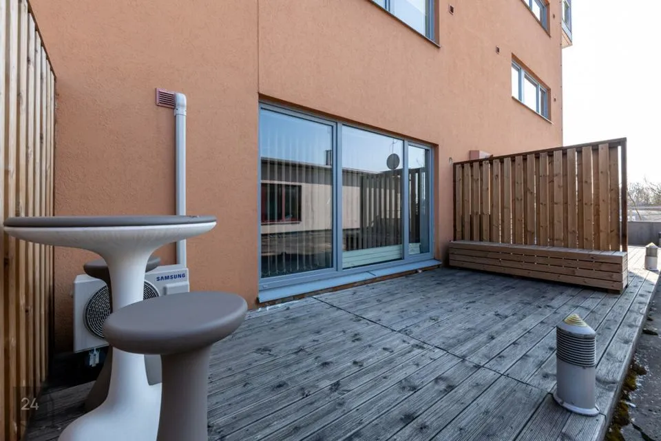 Igas korteris on esik, wc-dushiruum, avatud köögiga suur elutuba ja magamistuba. Terrassile pääseb igast korterist.