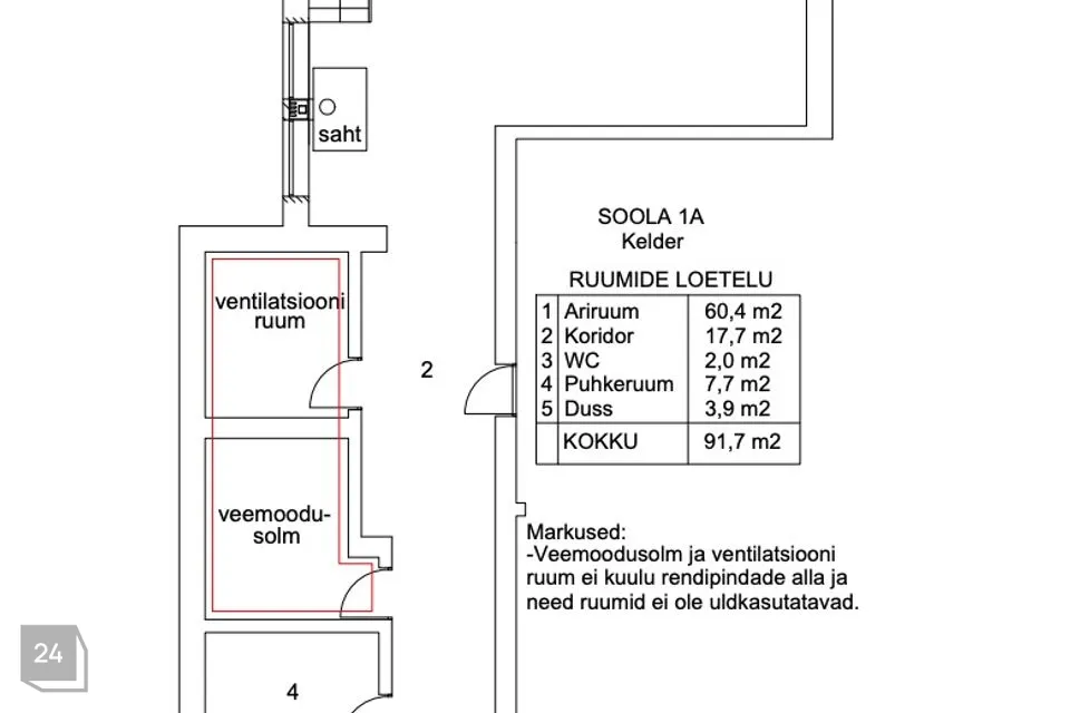 Äripind koosneb 3 ruumist. Üks suurem ruum 60.4m², üks väikse ruum 7.7m² ja Pesuruum 3,9m².