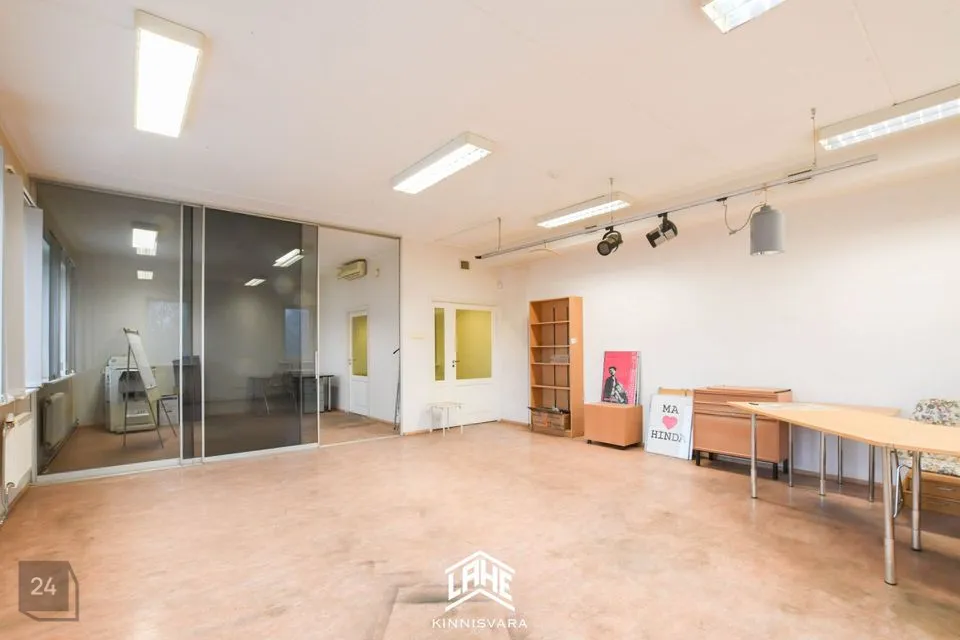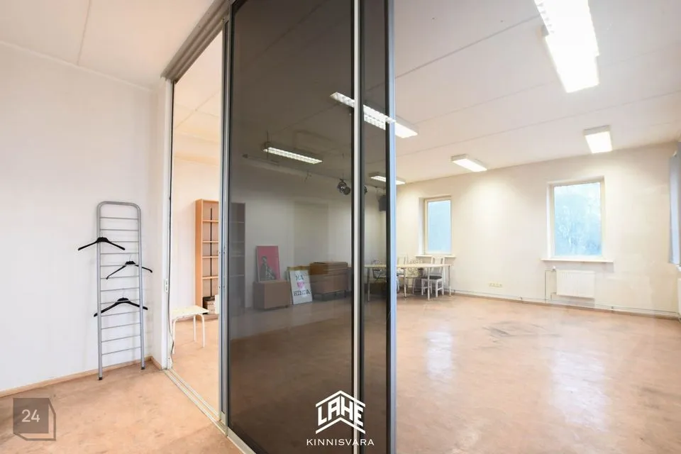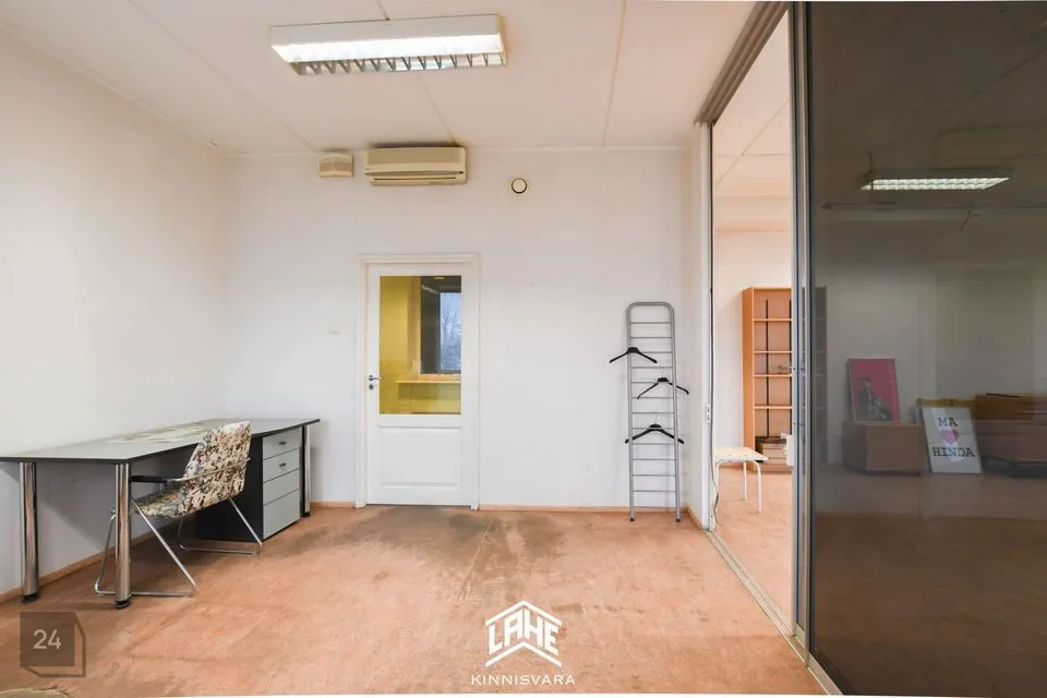 Umbes 510m² moodustab büroo- ja kaubanduspindadega kontoriosa. 2500m² viilhallipoolset osa on olnud kasutuses tootmispinnana. Kinnistu lõunapoolsest osast moodustab umbes 1800m² laoplats ning kaubalaadimisala. Parkimiskohti jagub hoone ida- ja põhjaküljel ca 30 autole. Lisaks on olemas võimalus kasutada ära laoplatsiks või muuks eesmärgiks ca 800m² seni kasutamata olnud kinnistu lääne- ning loodepoolne nurk.