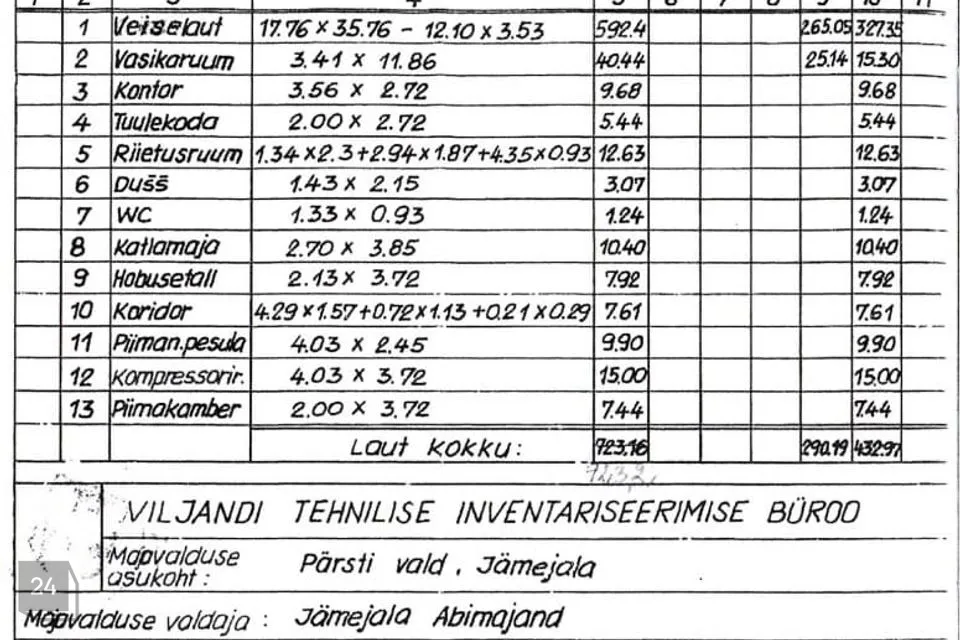 The water supply is central Viljandi city water. There is also a septic tank. The sewerage is local. Electricity is 50 A, 3 phases.
