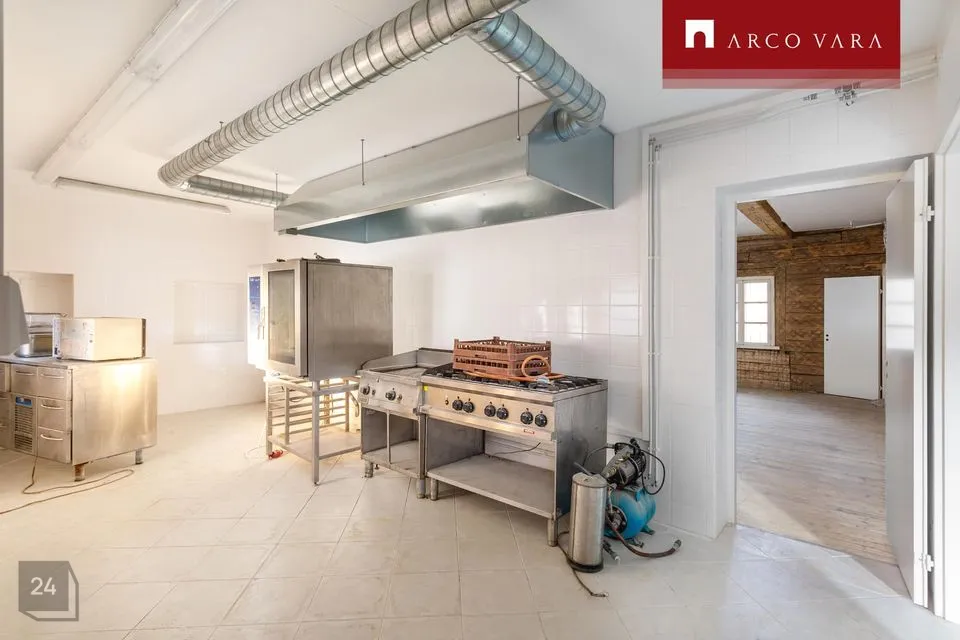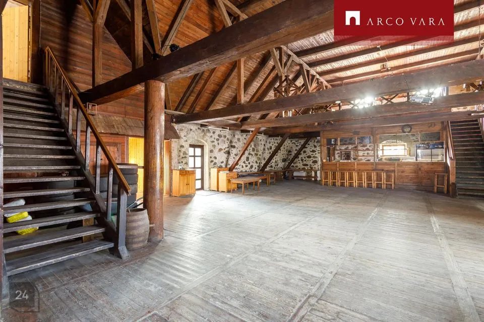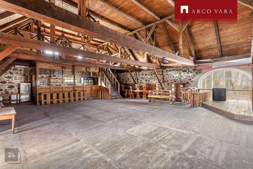 Saali esimesel korrusel sissekäigu juures asub suur garderoob ja tualettruumid külalistele. Edasi minnes on söögi/peosaal ning saali tagaosas asub baar kogupinnaga 185,7 m². Avatud planeeringuga restoraniosa teisel korrusel on mõlemal pool ca 150 m² pinda. Esimese korruse saalist on võimalik jalutada kõrtsihoone suveaeda, kus on võimalik soojal ajal nautida väliköögi võimalusi. Töötajatele on olemas eraldi ruumid - puhkeruum, kontor, köök ja laoruum (kokku ca 126 m²). Hinna sees on kogu restorani ja köögi sisustus.